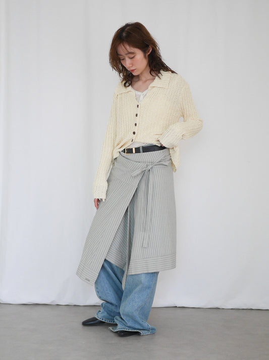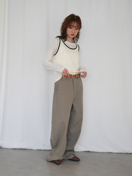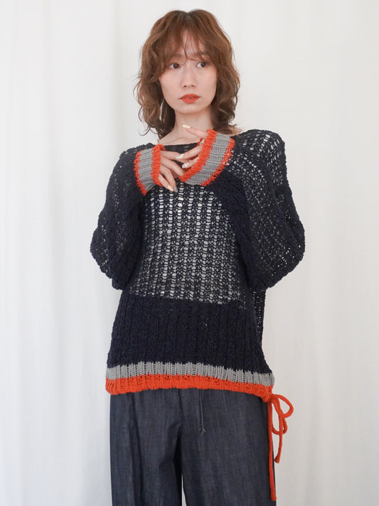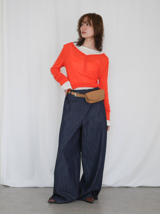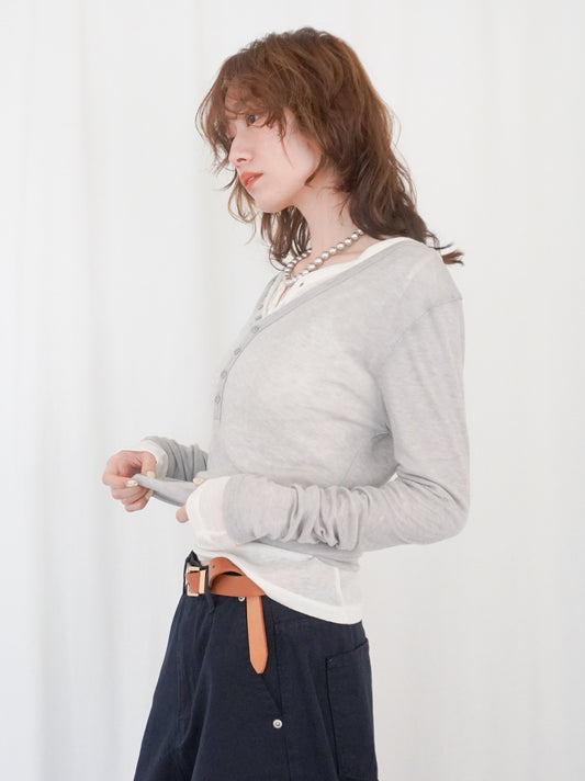 Big silhouette マルチボーダーVガゼットロングTシャツ