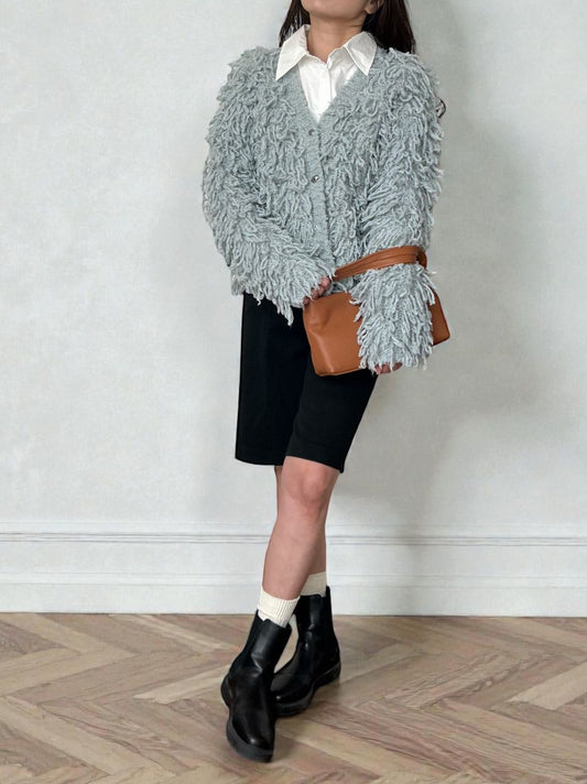 Loop yarn フリンジVネックカーディガン
