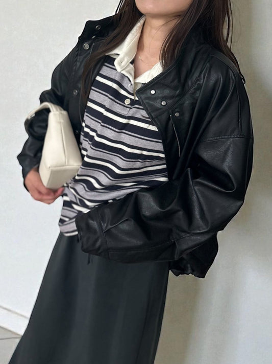 Eco leather スタンドカラージップブルゾン