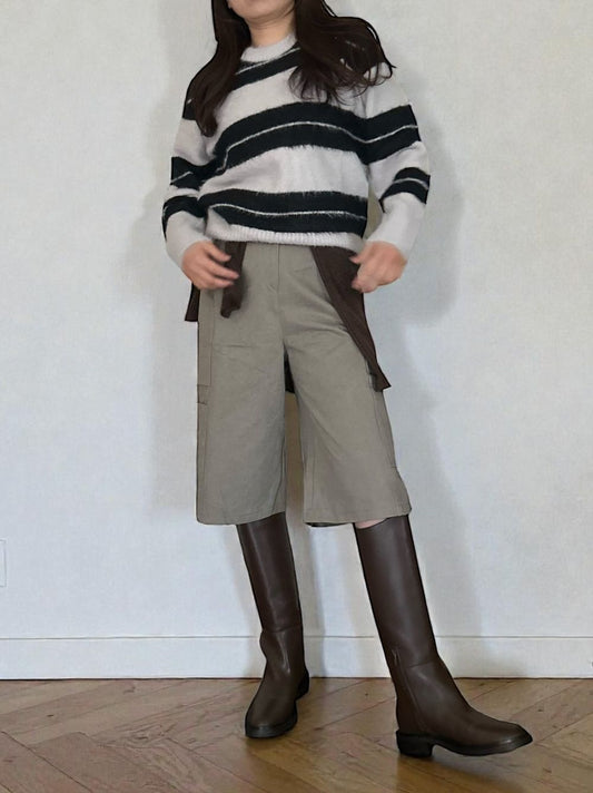 Mohair like shaggy ワイドボーダーニット