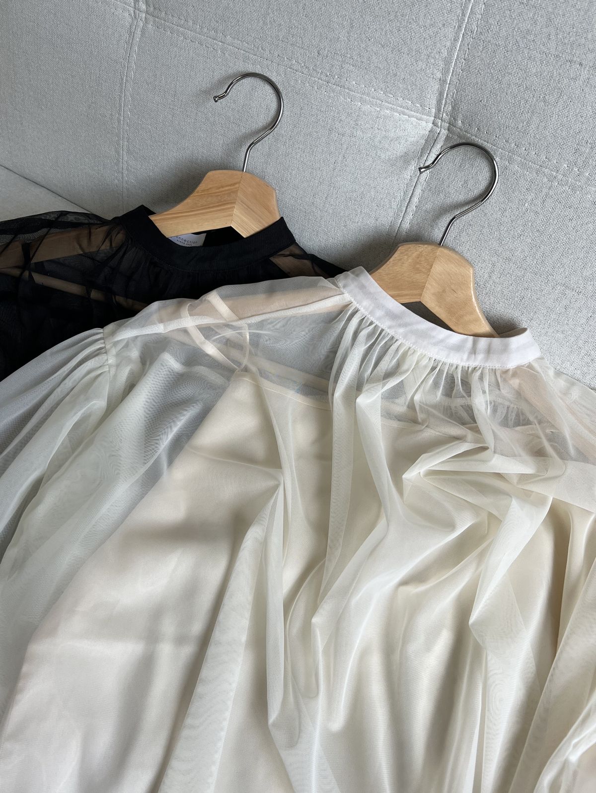 シフォン生地から覗く肌の透け感がフェミニンさを増してくれるシースルートップス。