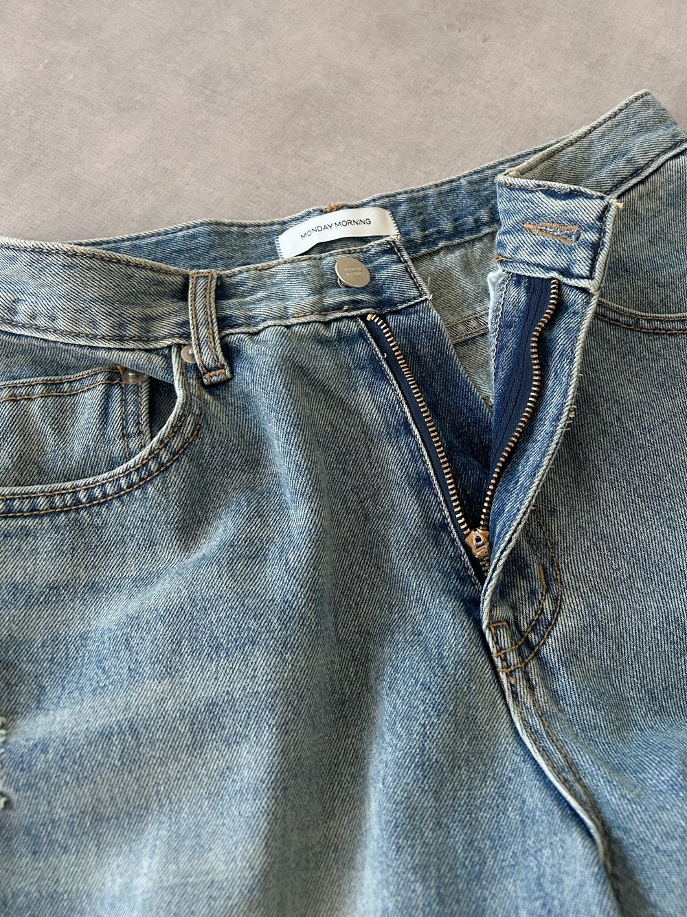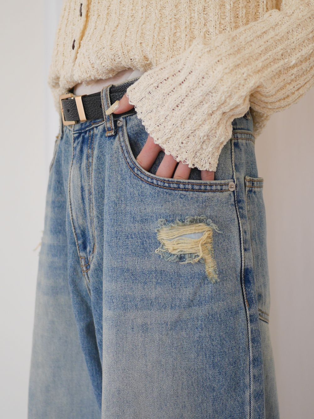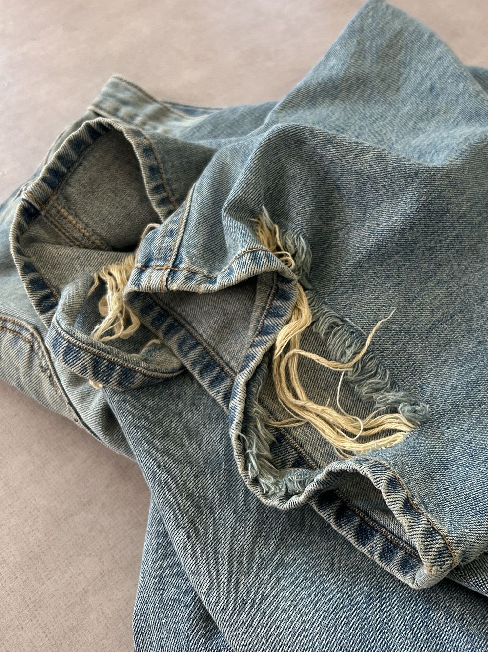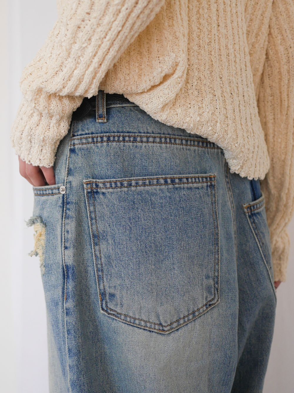 特に裾のダメージは、ラフさの中にリアルなヴィンテージ感を感じさせるのがポイント。