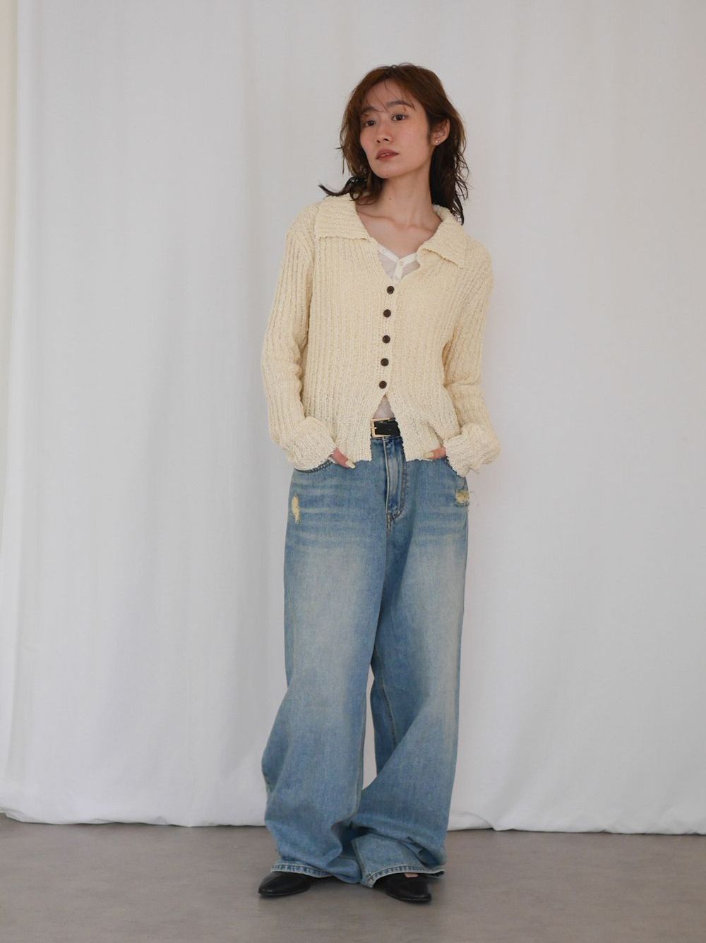 ゆるさの中に、さりげない美しさを感じさせるワイドストレートデニム。