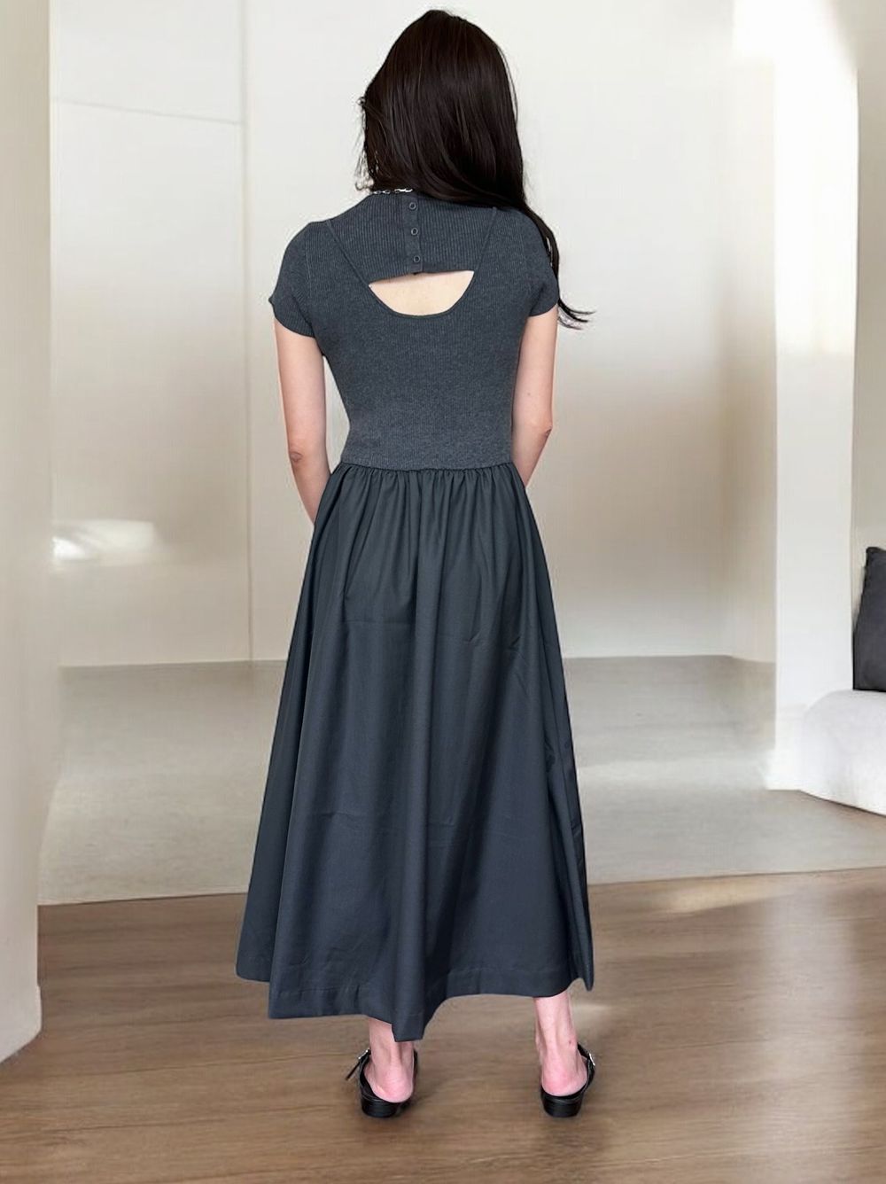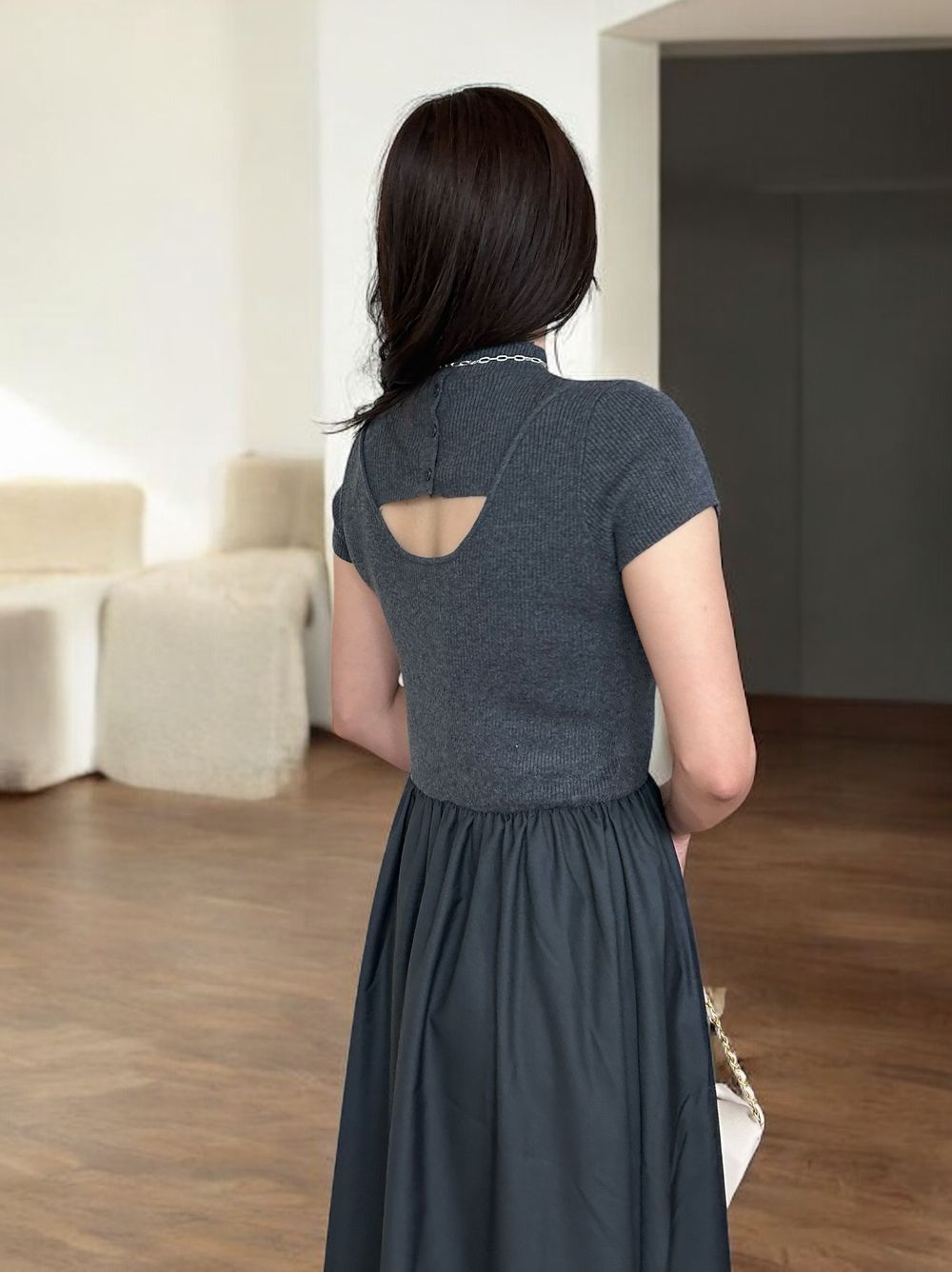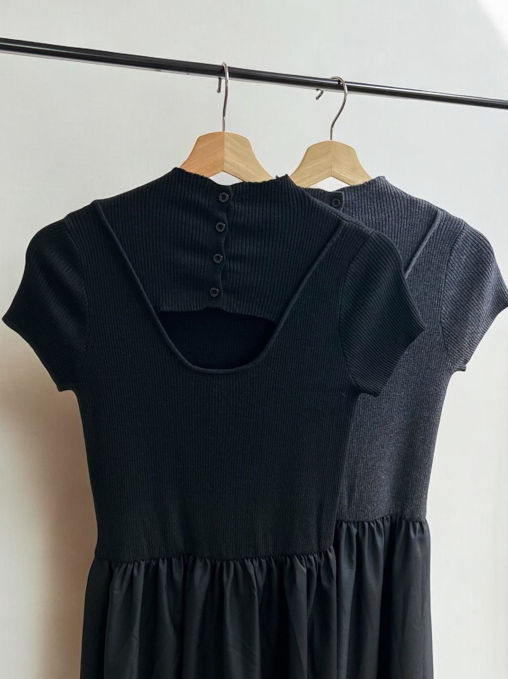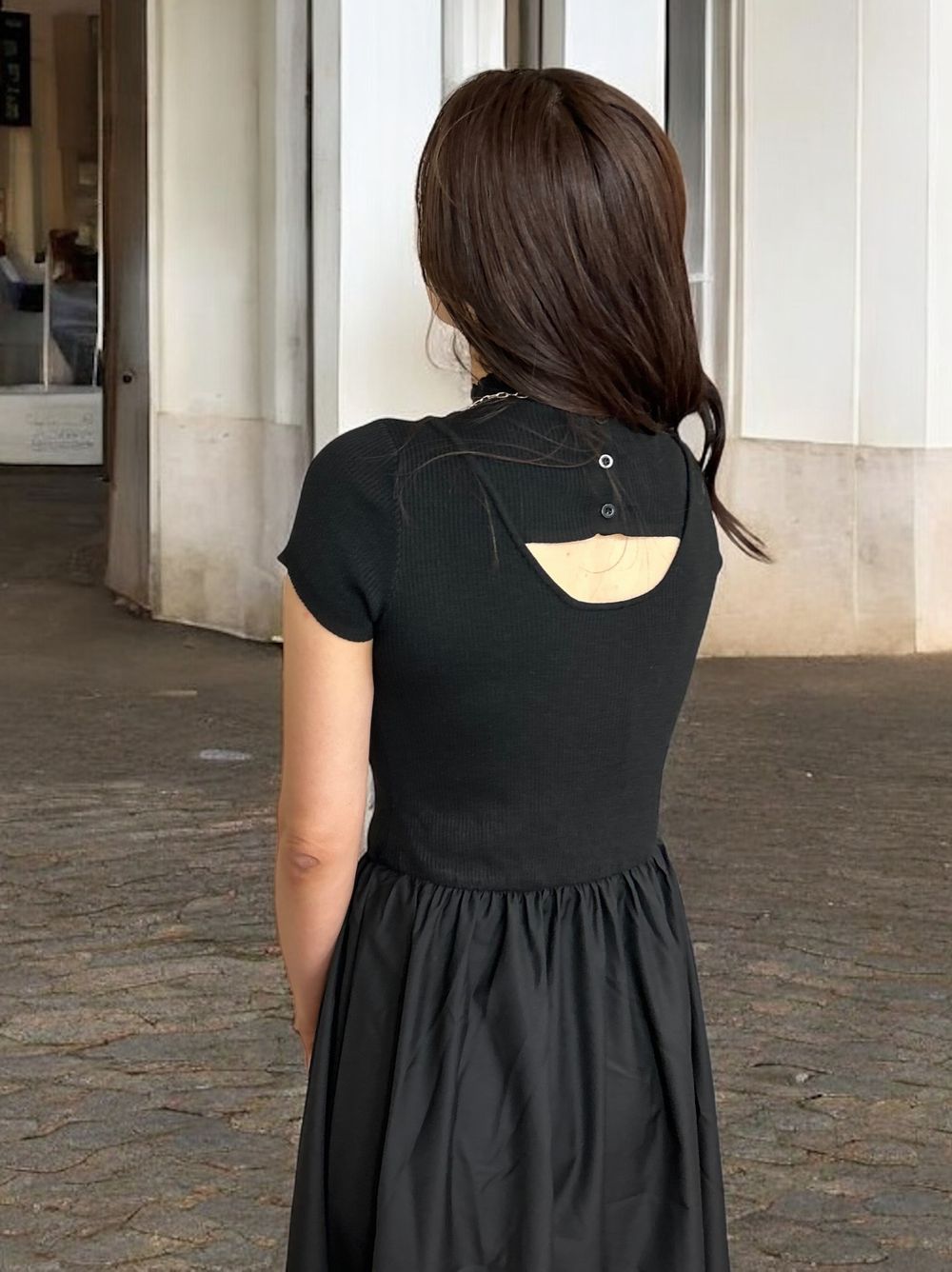 Back open リブニットドッキングワンピース