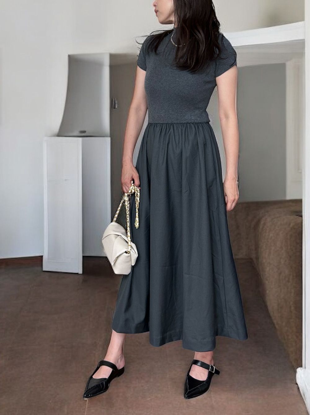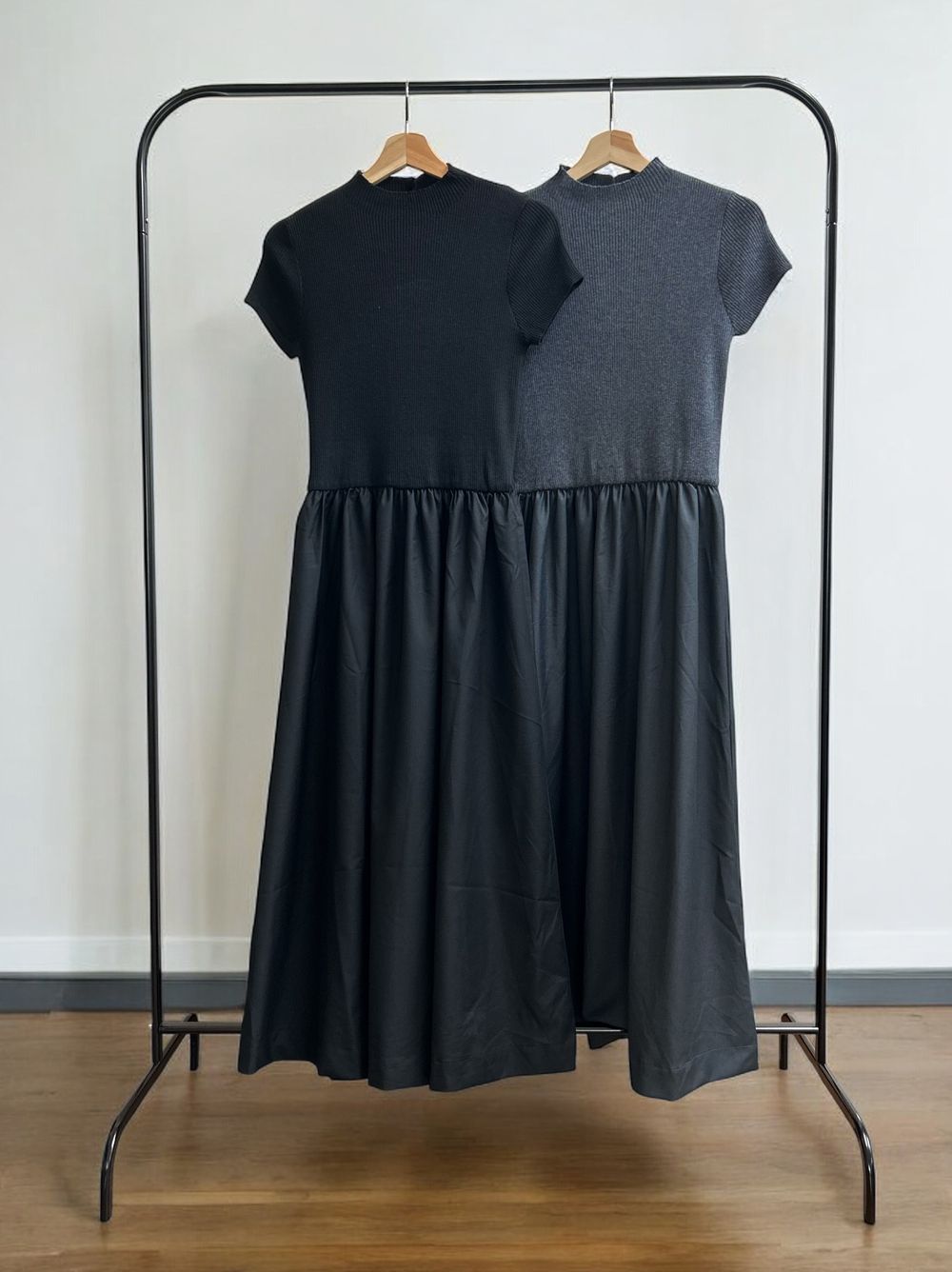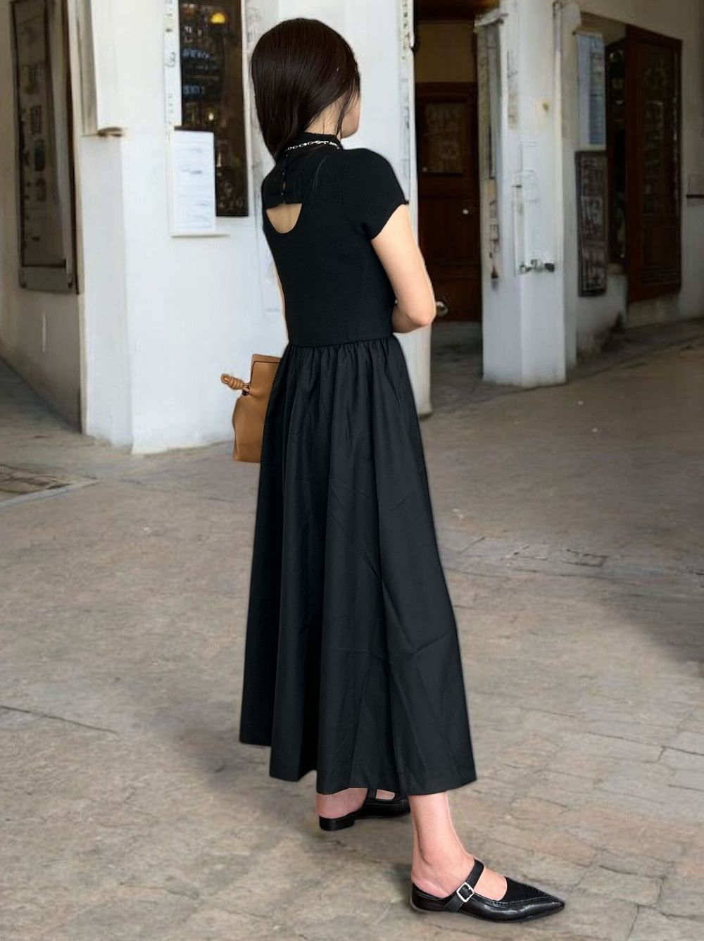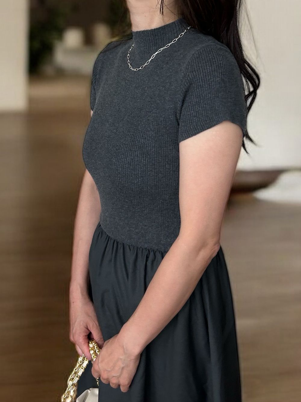 Back open リブニットドッキングワンピース