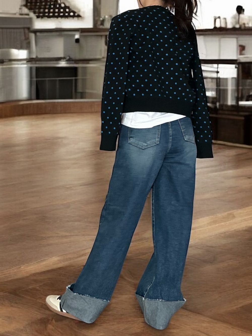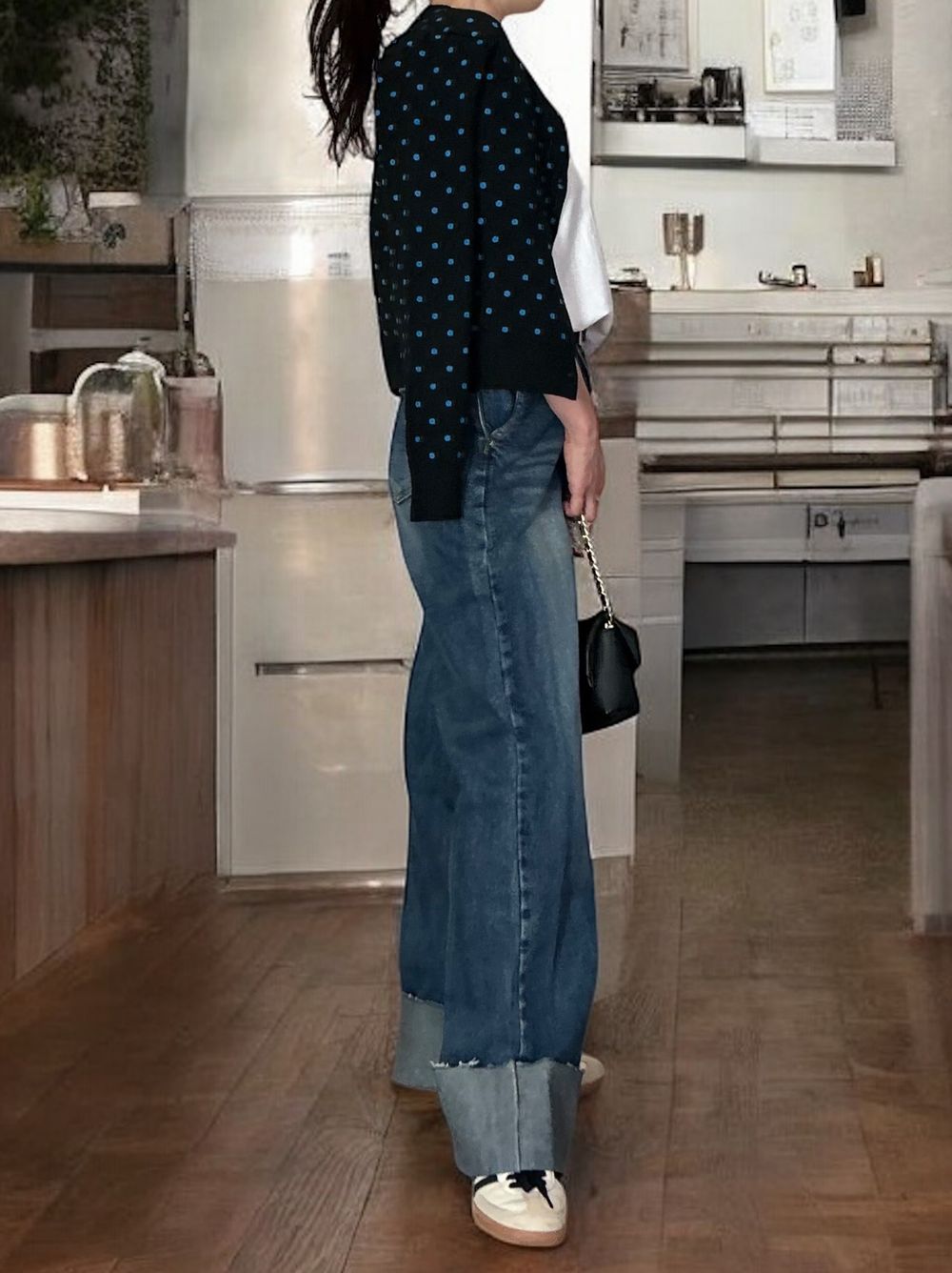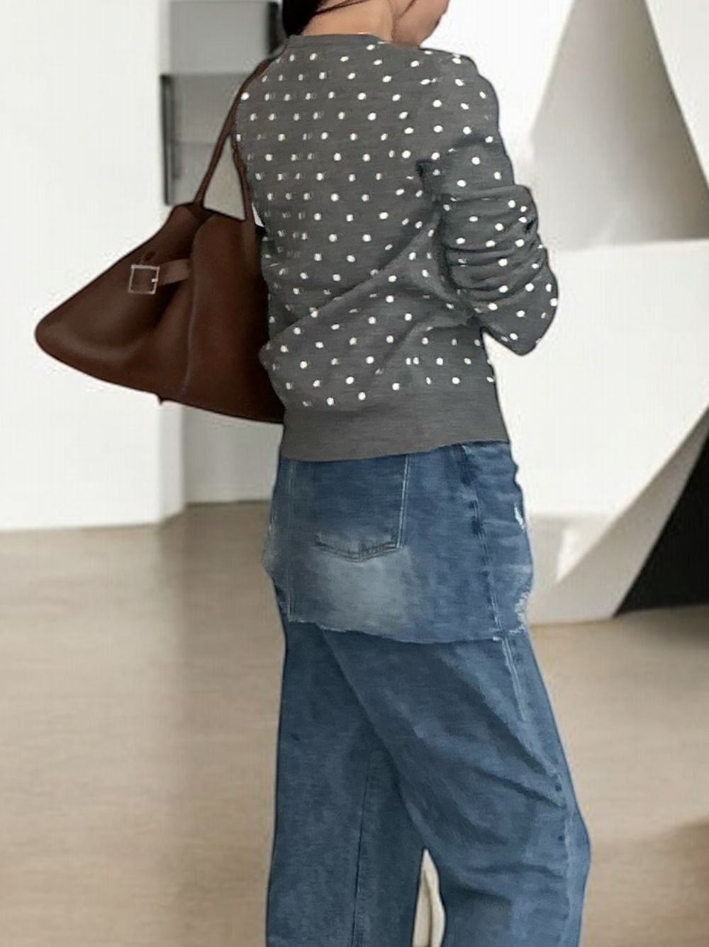 かわいい印象になりがちなドット柄を、大人コーデに合わせやすいカラーと小ぶりな水玉によってシックで上品な印象を与えてくれるデザインに仕上げました。