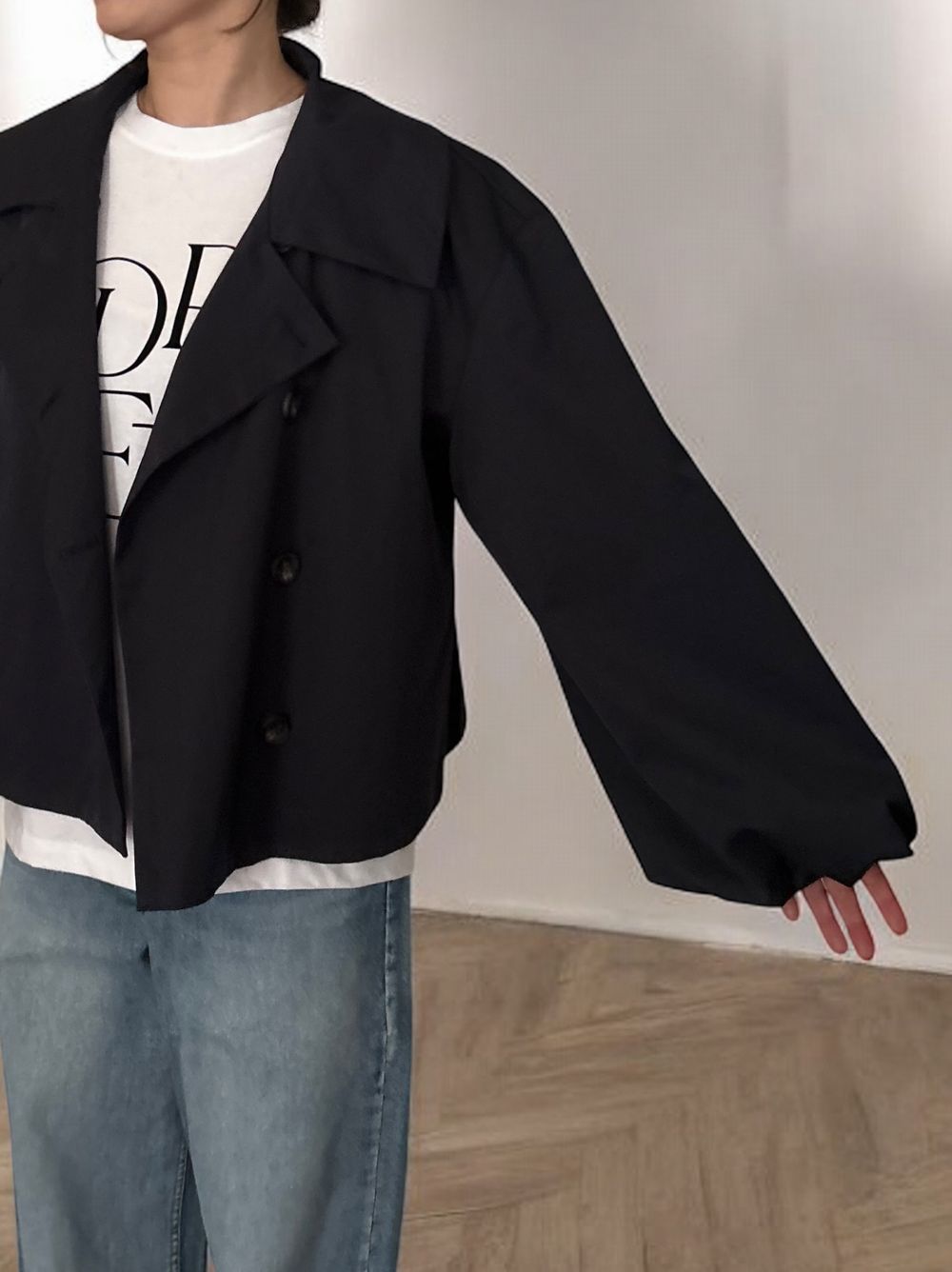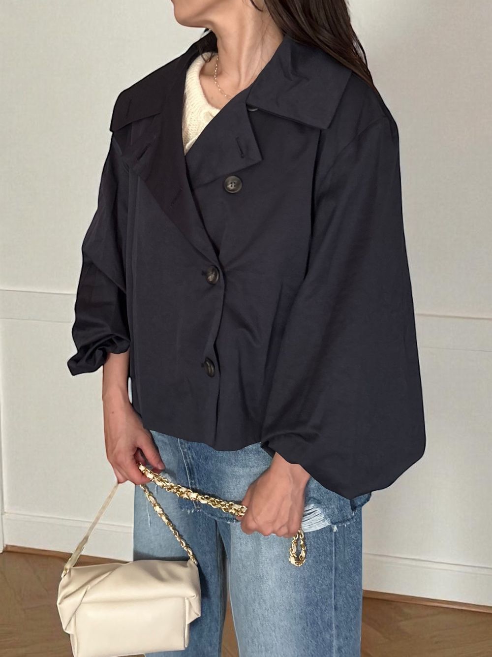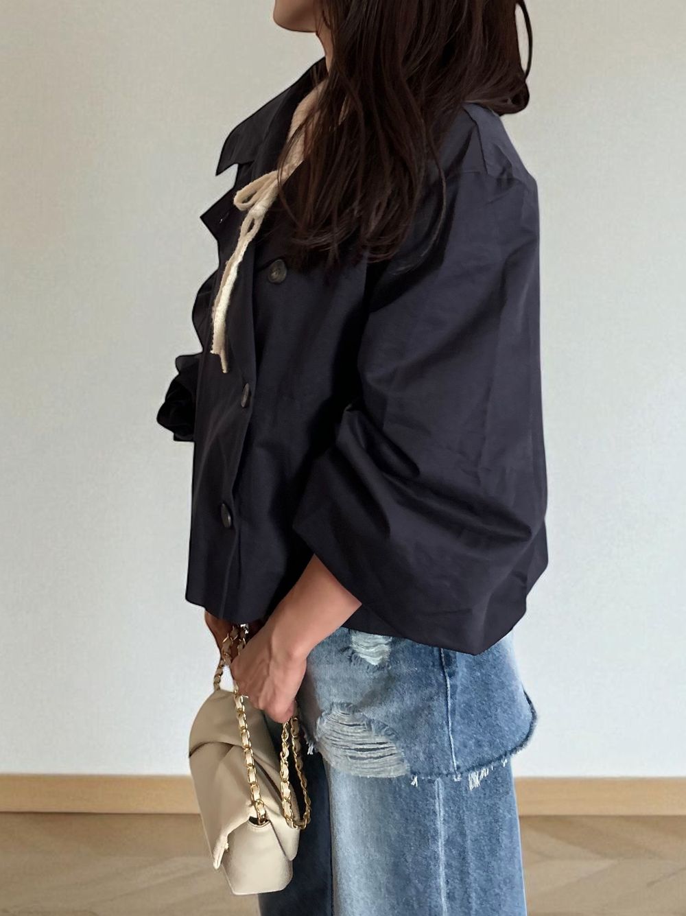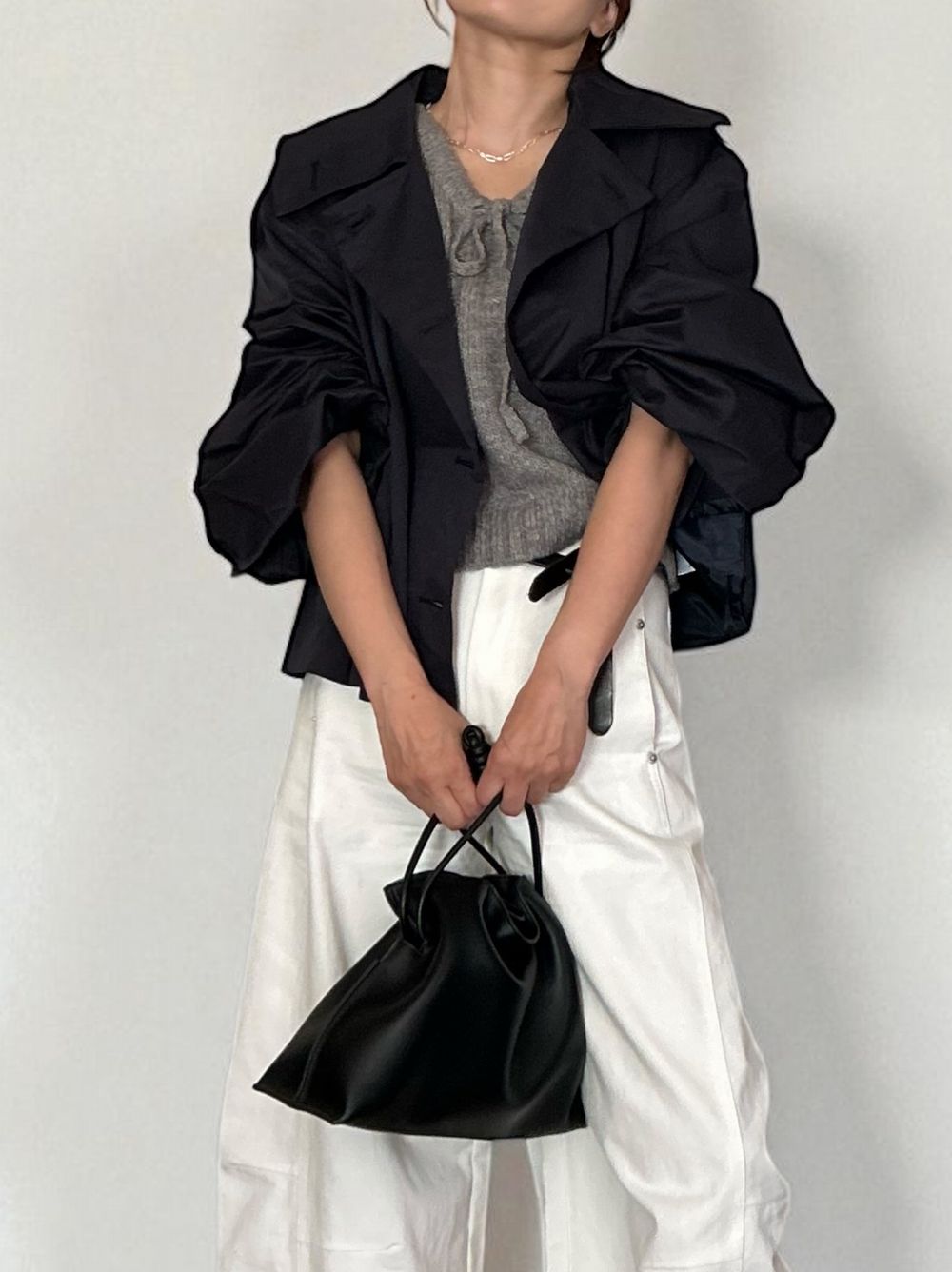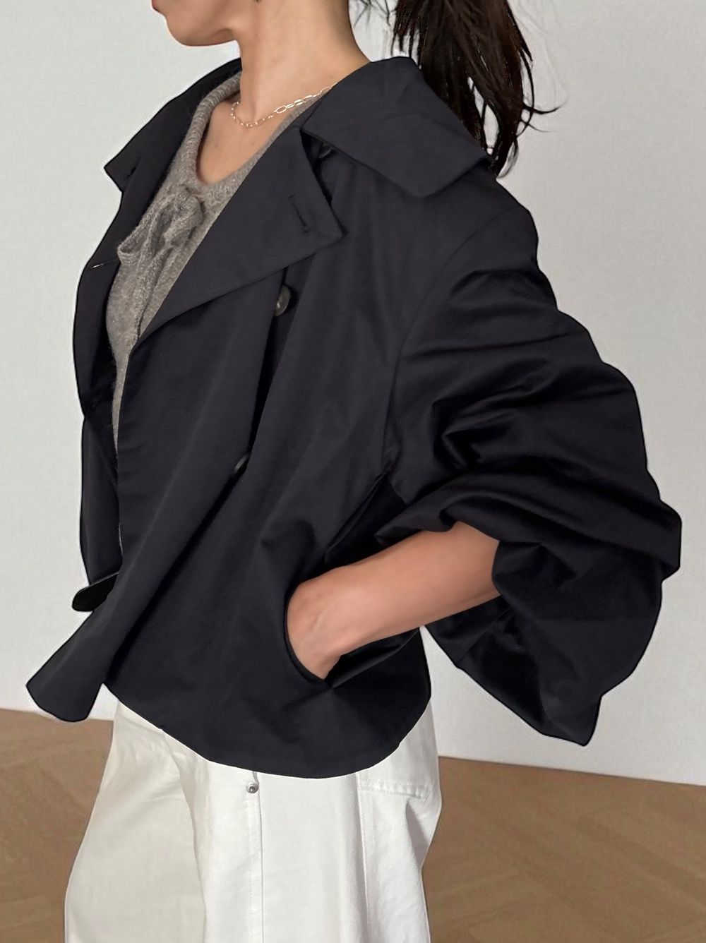 肩から袖口にかけてぽわんとしたシルエットが印象的なストームカラーのショートジャケット。