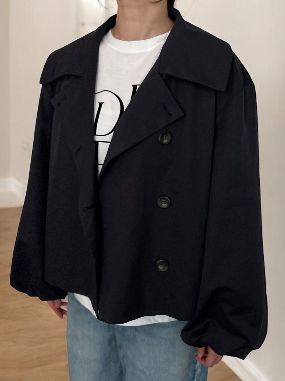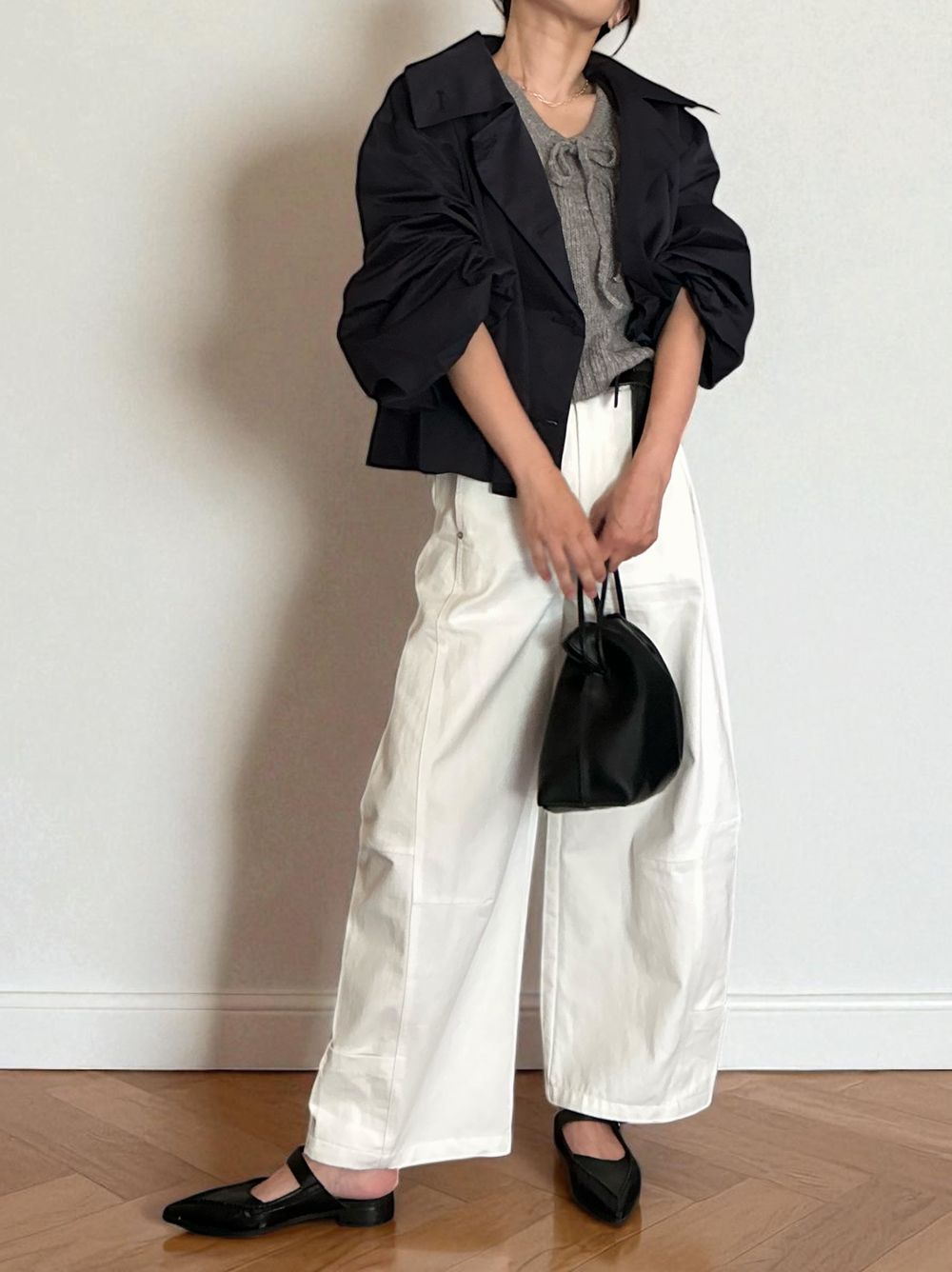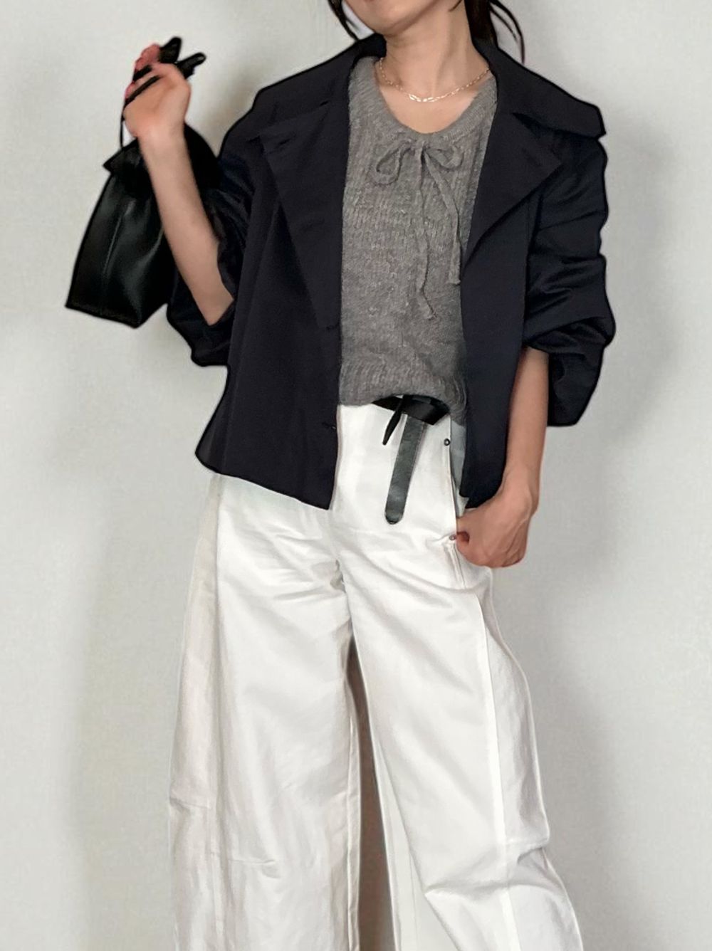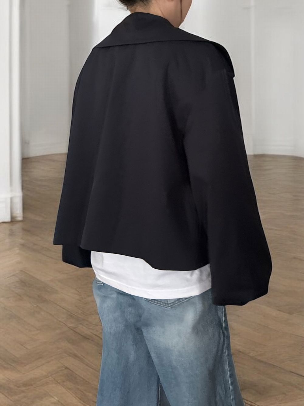 肩から袖口にかけてぽわんとしたシルエットが印象的なストームカラーのショートジャケット。