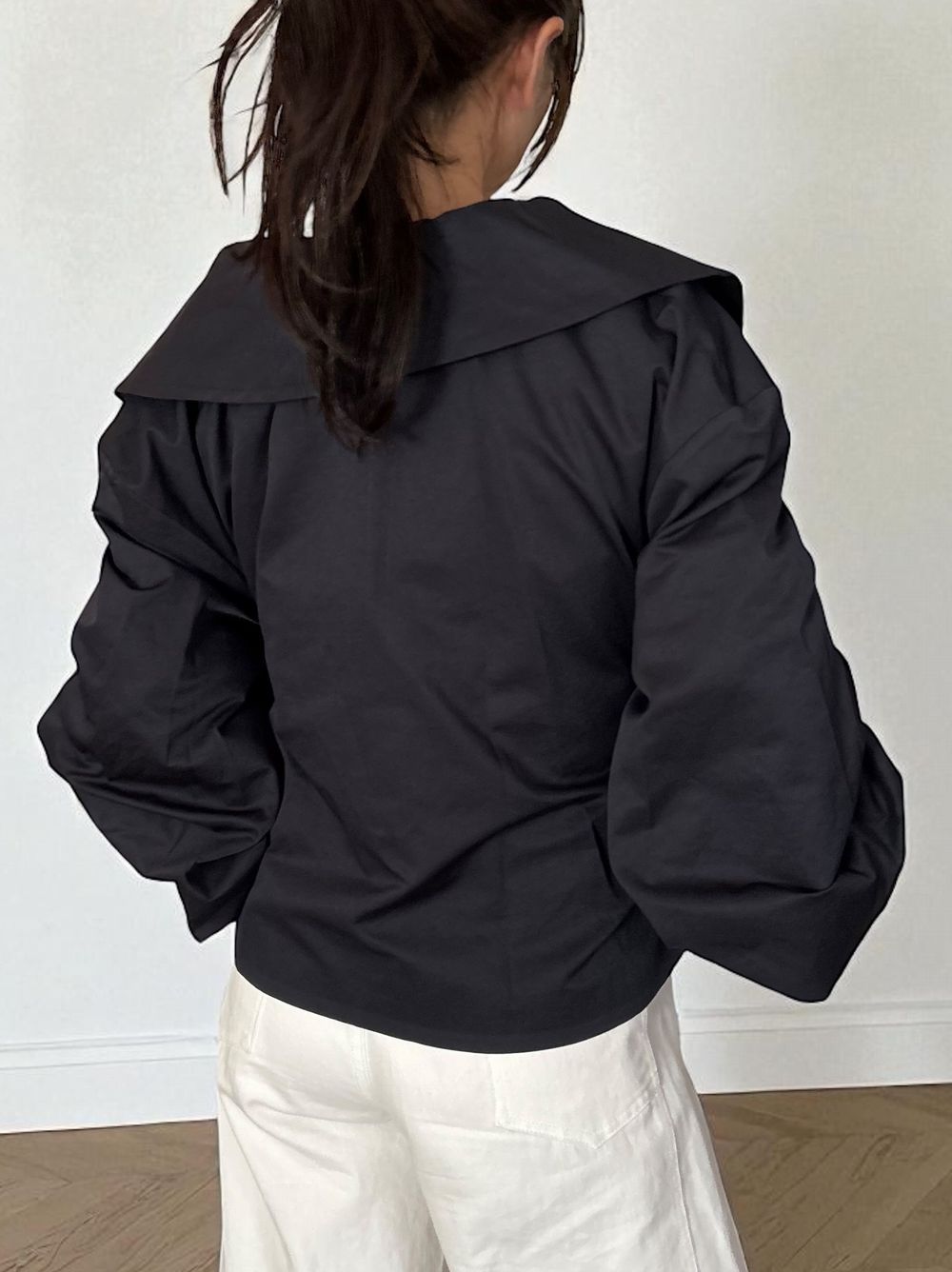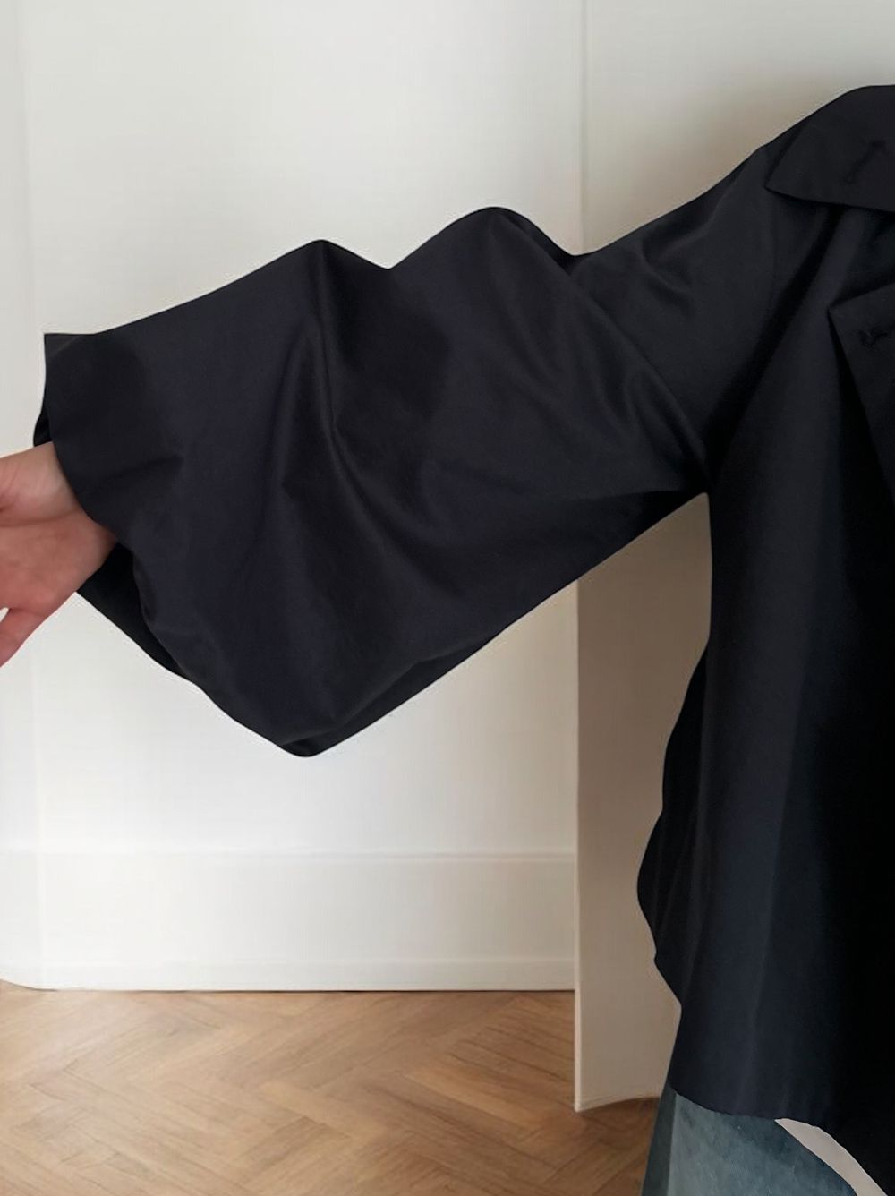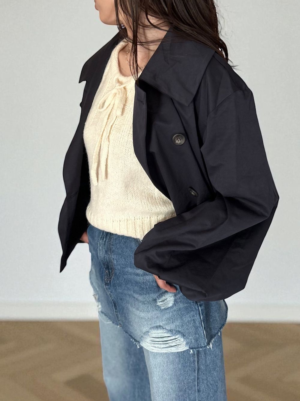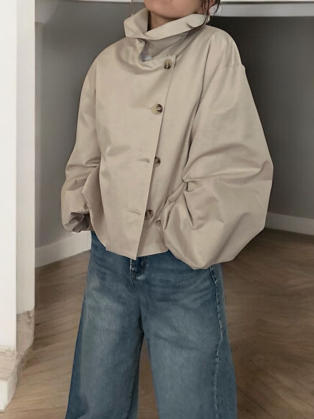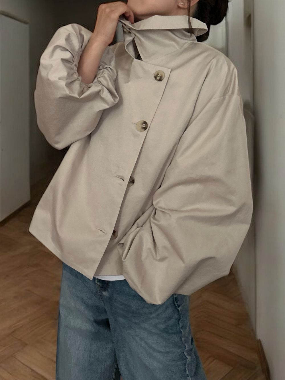 肩から袖口にかけてぽわんとしたシルエットが印象的なストームカラーのショートジャケット。
