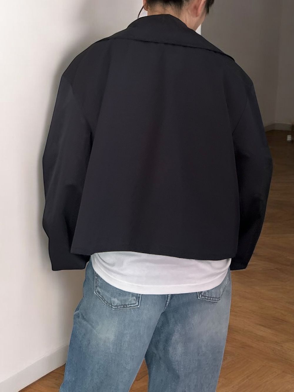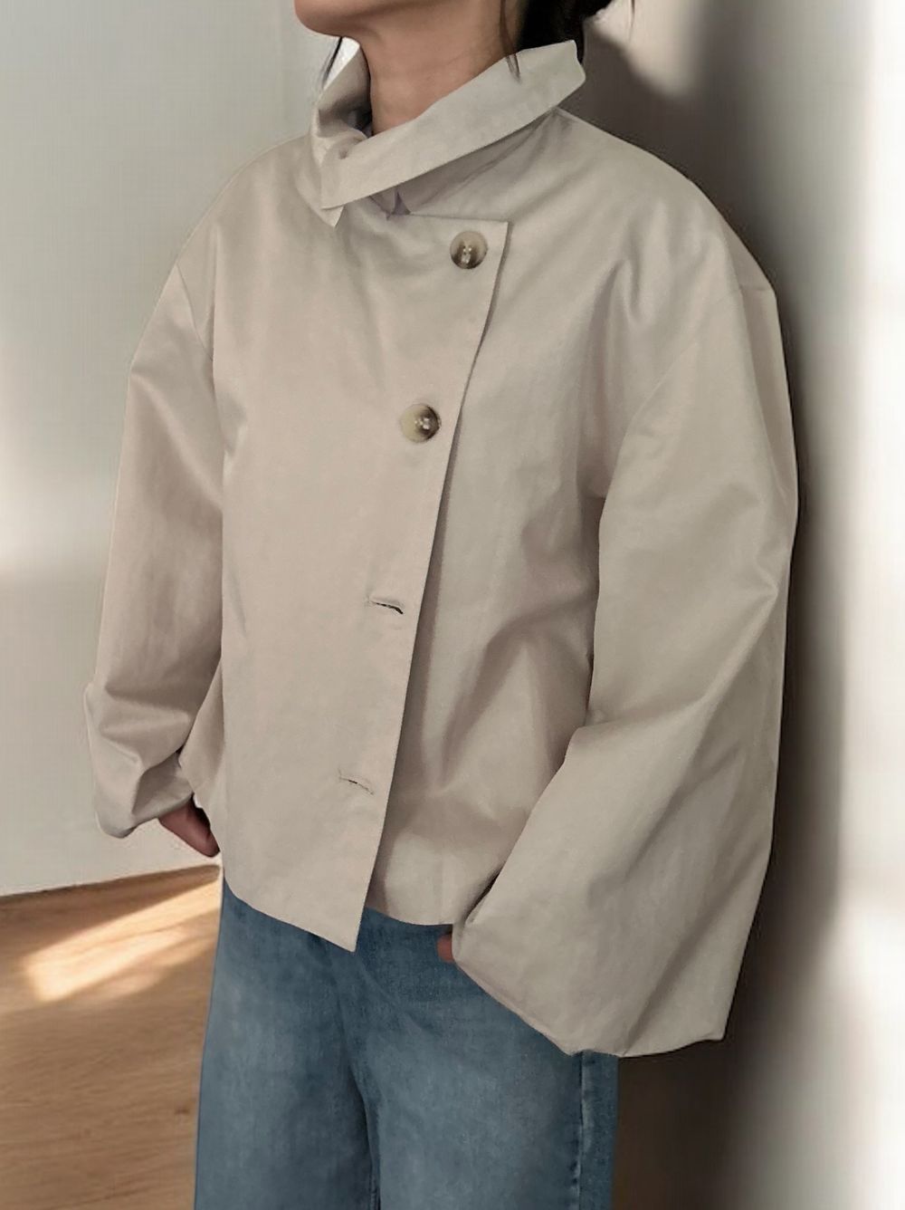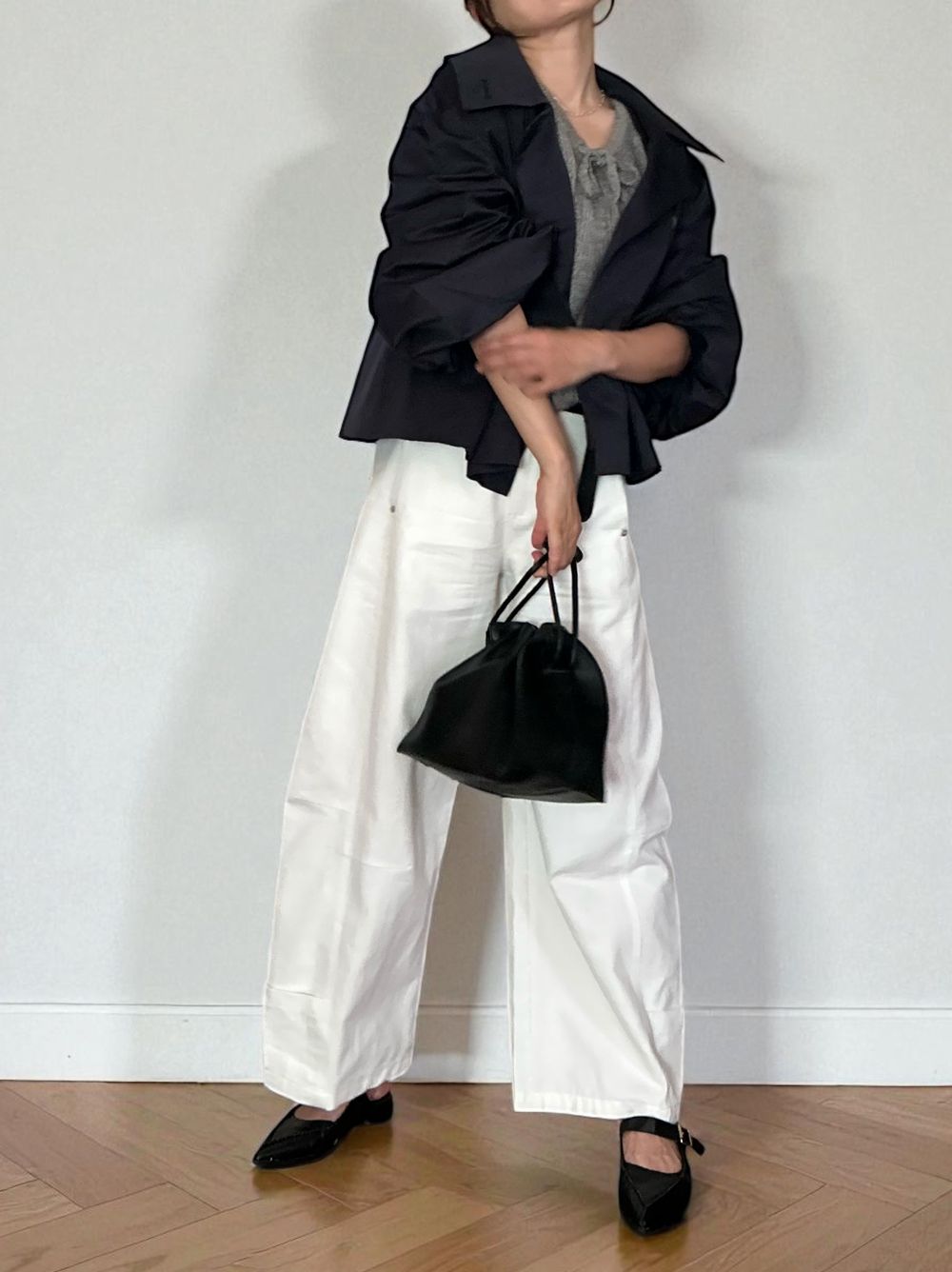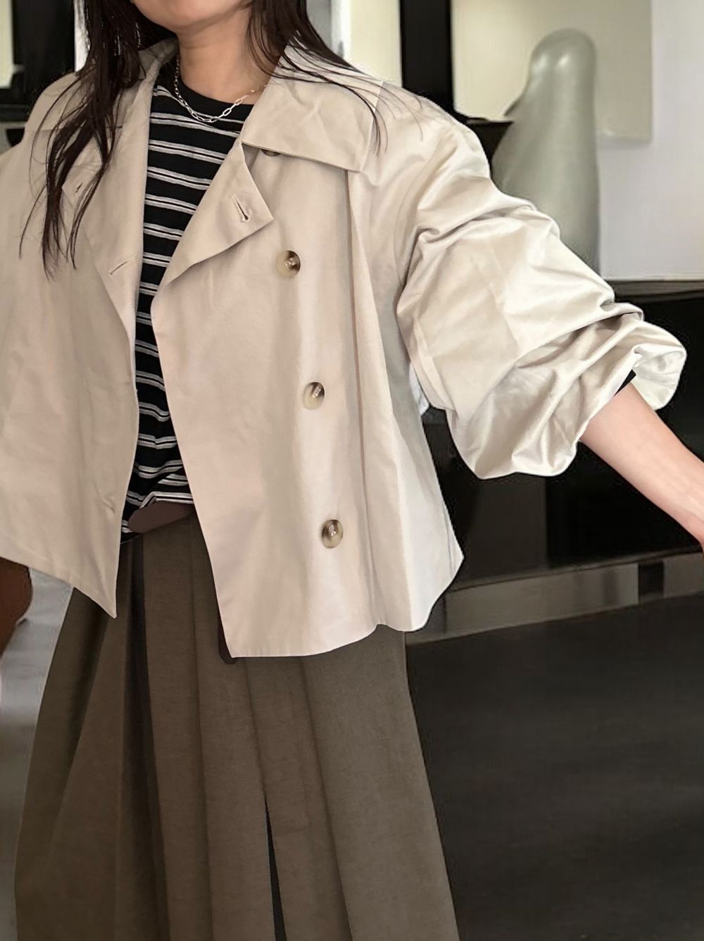 肩から袖口にかけてぽわんとしたシルエットが印象的なストームカラーのショートジャケット。