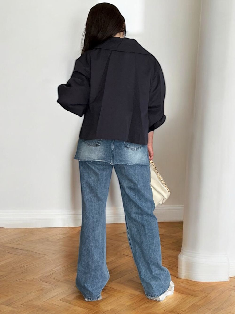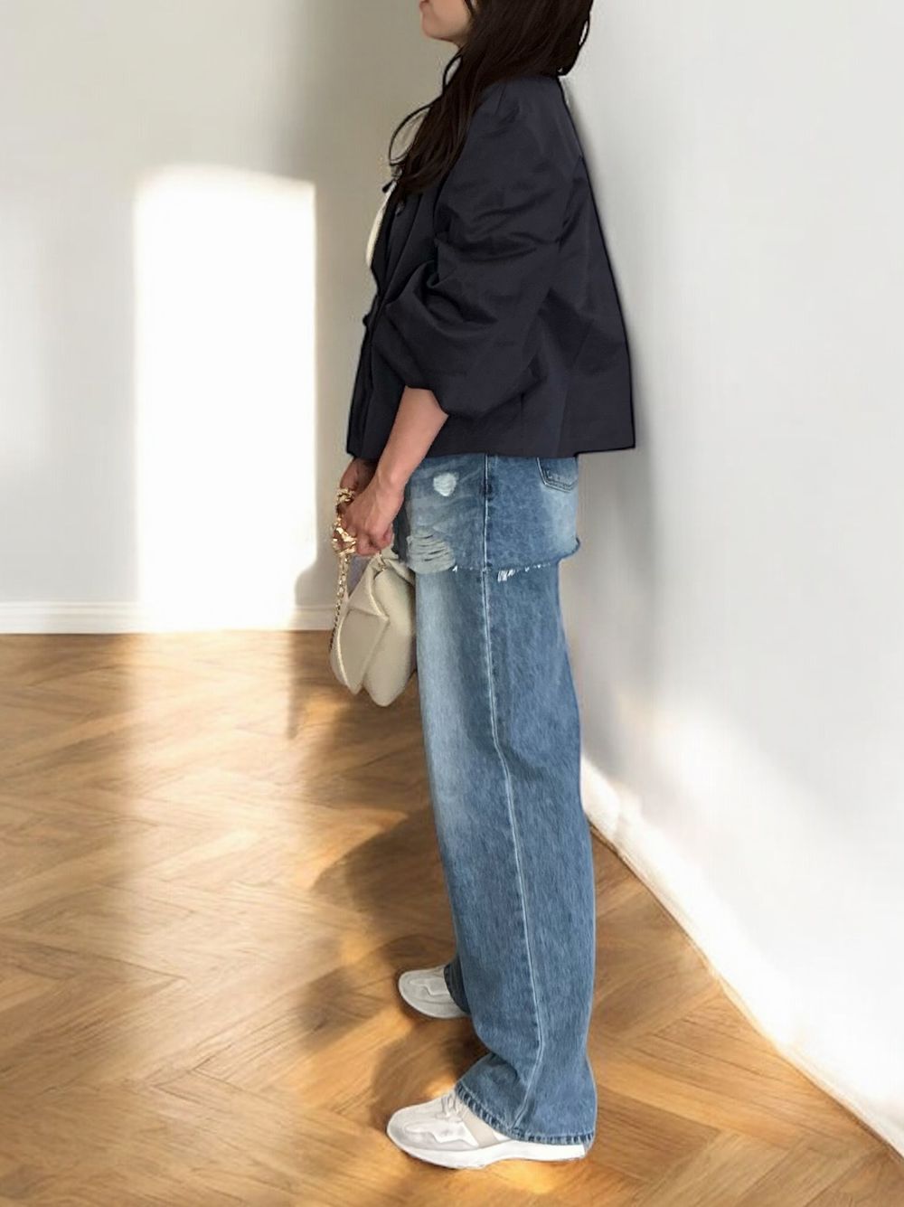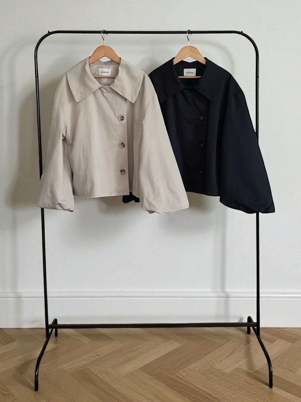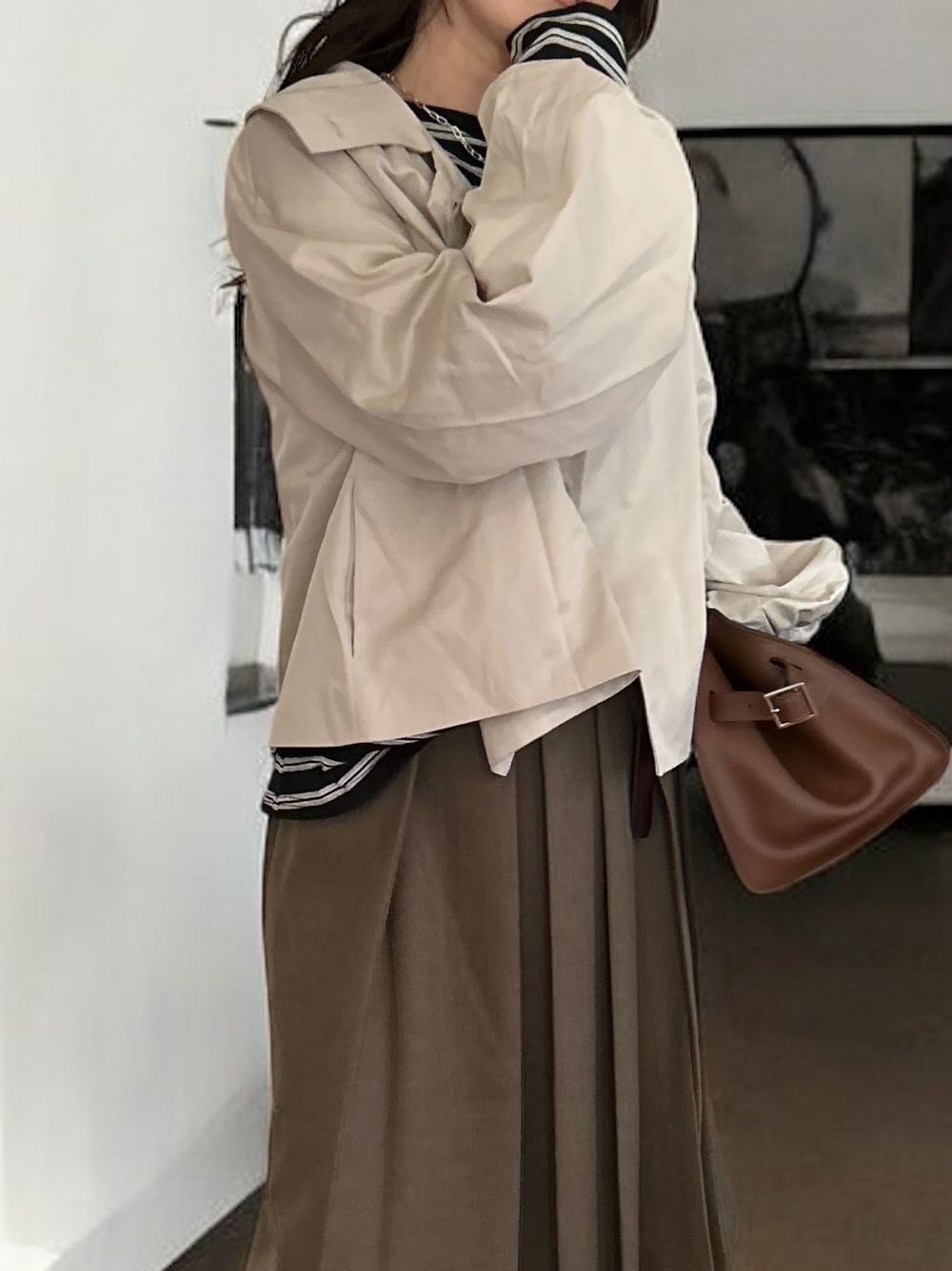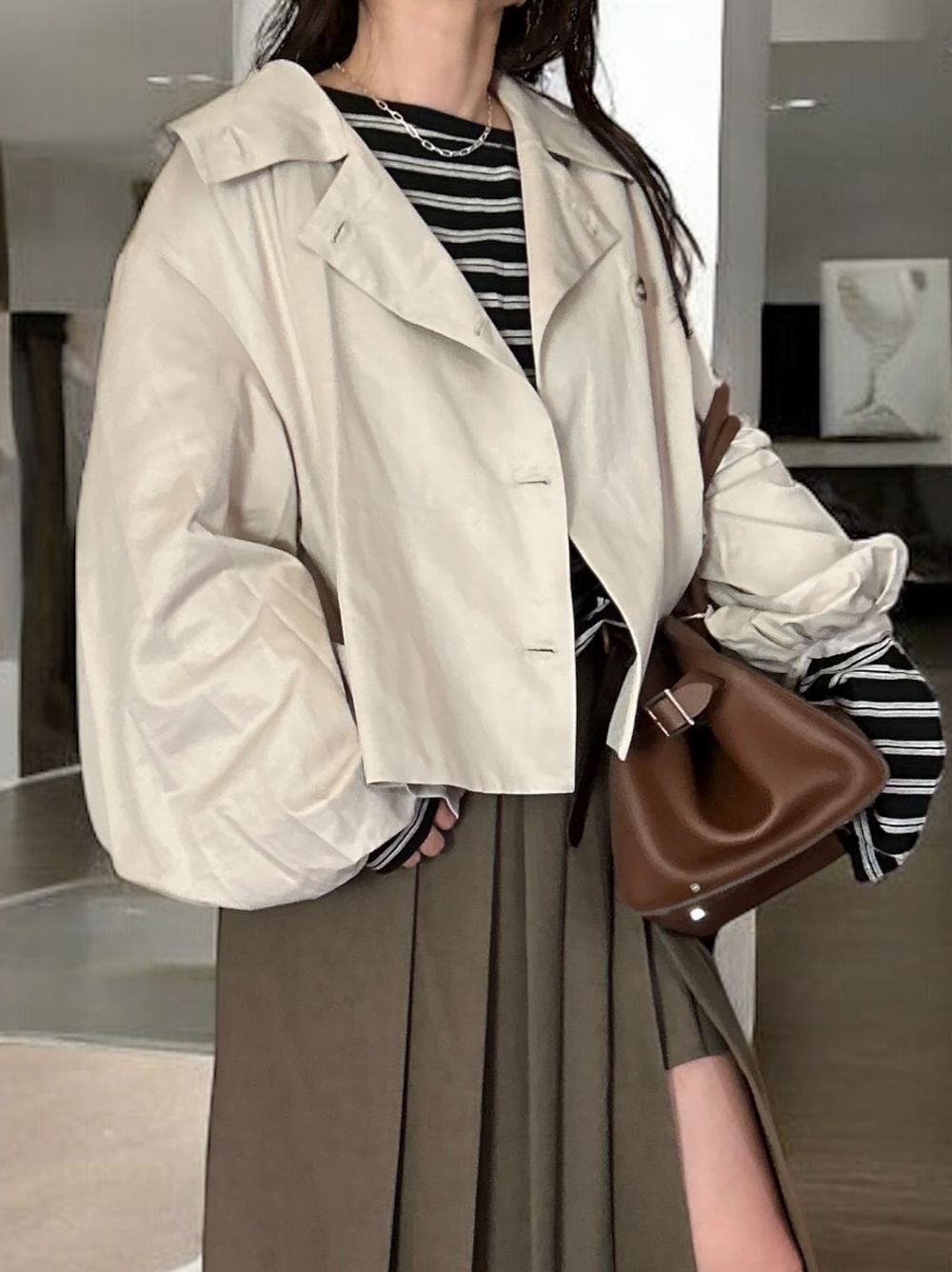 肩から袖口にかけてぽわんとしたシルエットが印象的なストームカラーのショートジャケット。