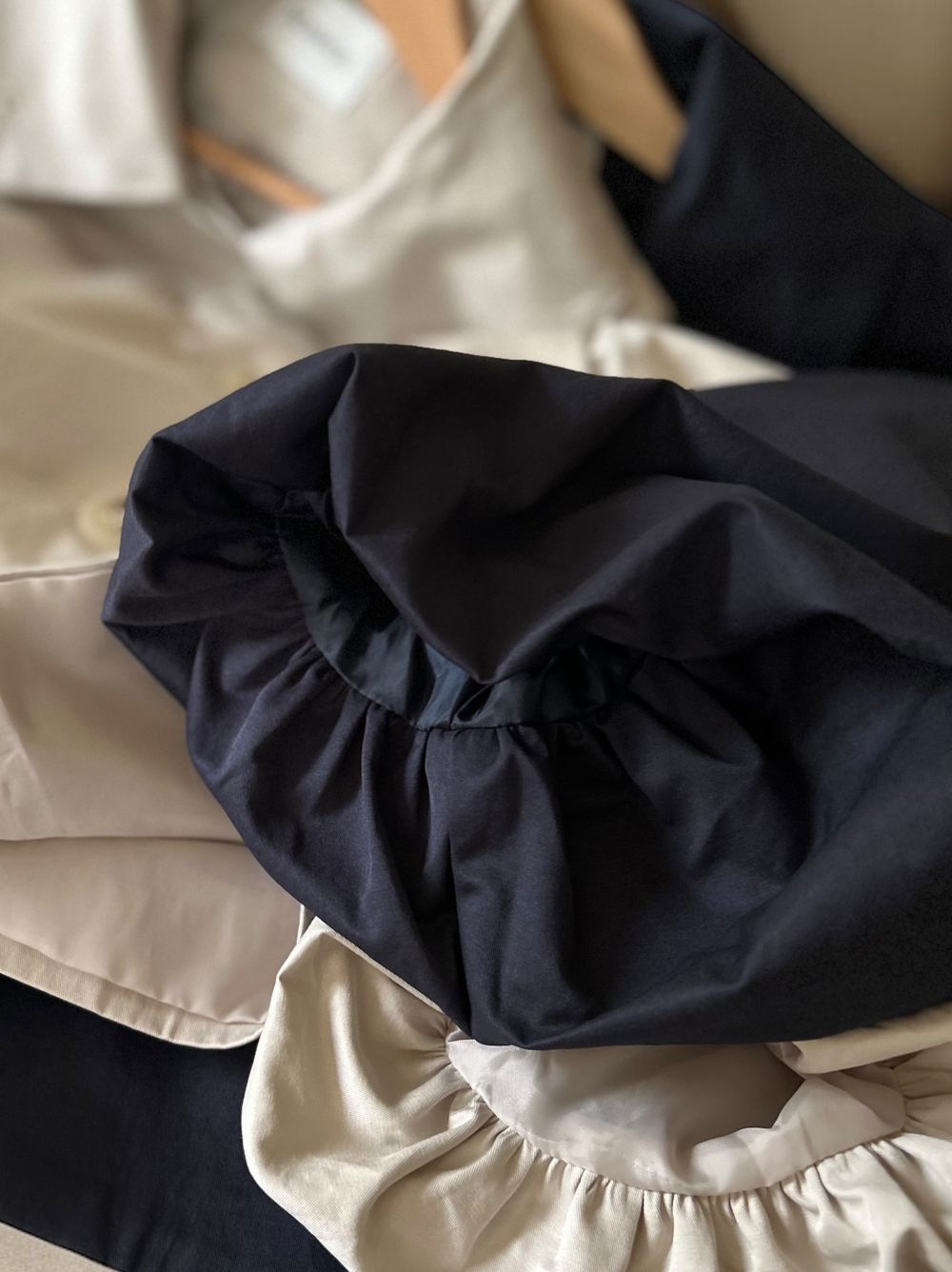 たっぷり施された袖口のギャザーがシンプルなディテールにポイントを効かせ、ふんわりかわいいバルーンスリーブに仕立てられています。
