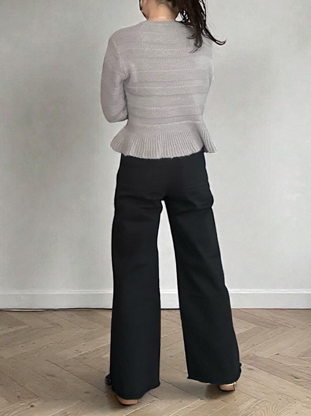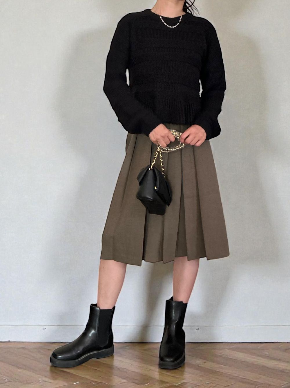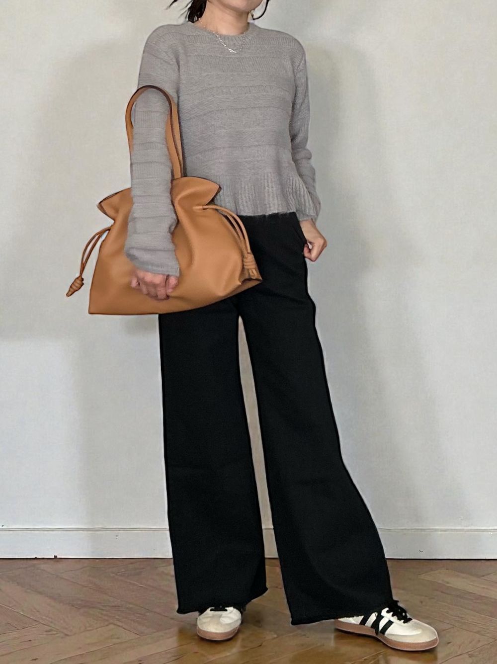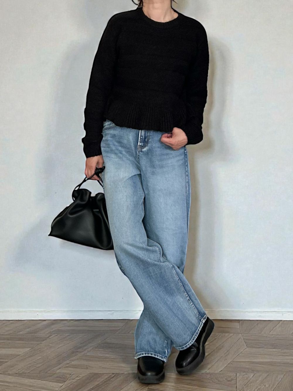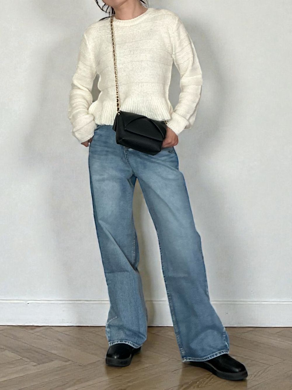 ふんわりとミドルゲージで編みこんだリブデザインに、甘くなり過ぎないゆるやかなペプラムが大人コーデを引き立てます。
