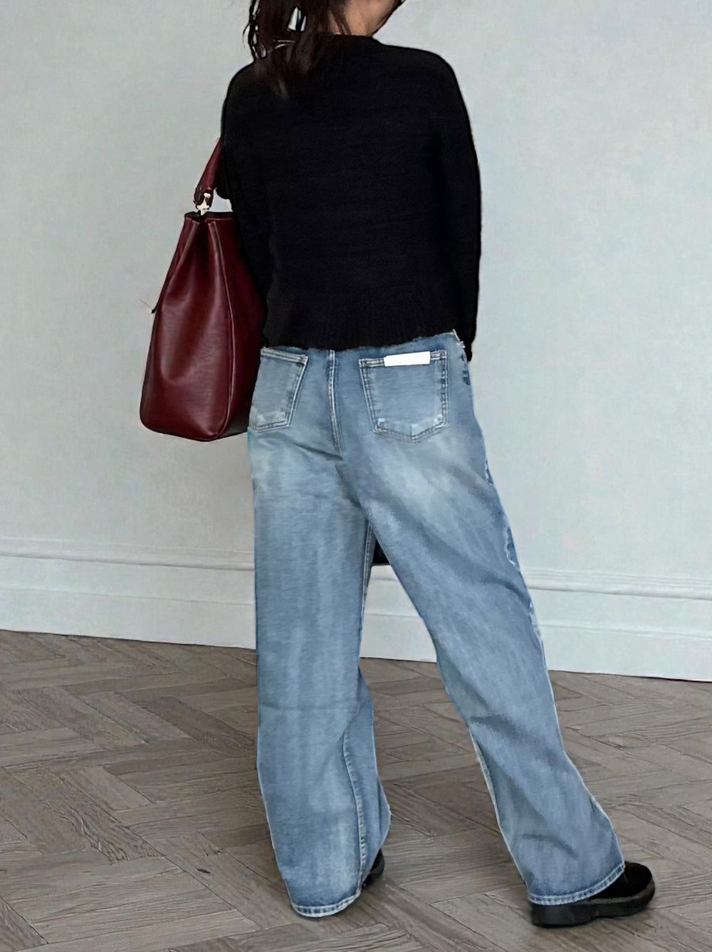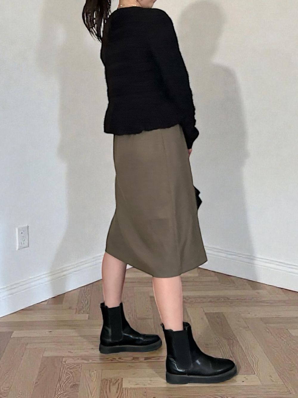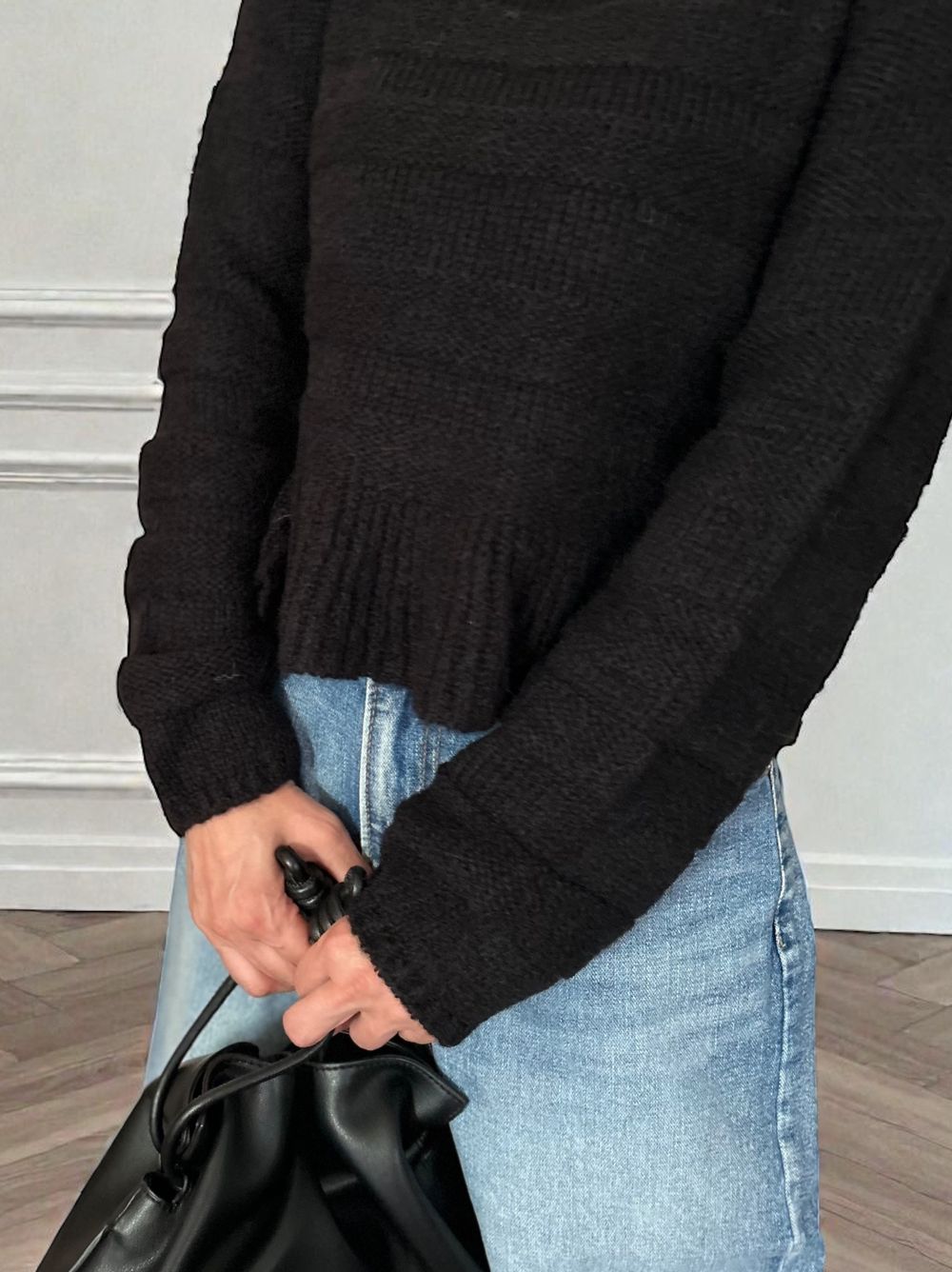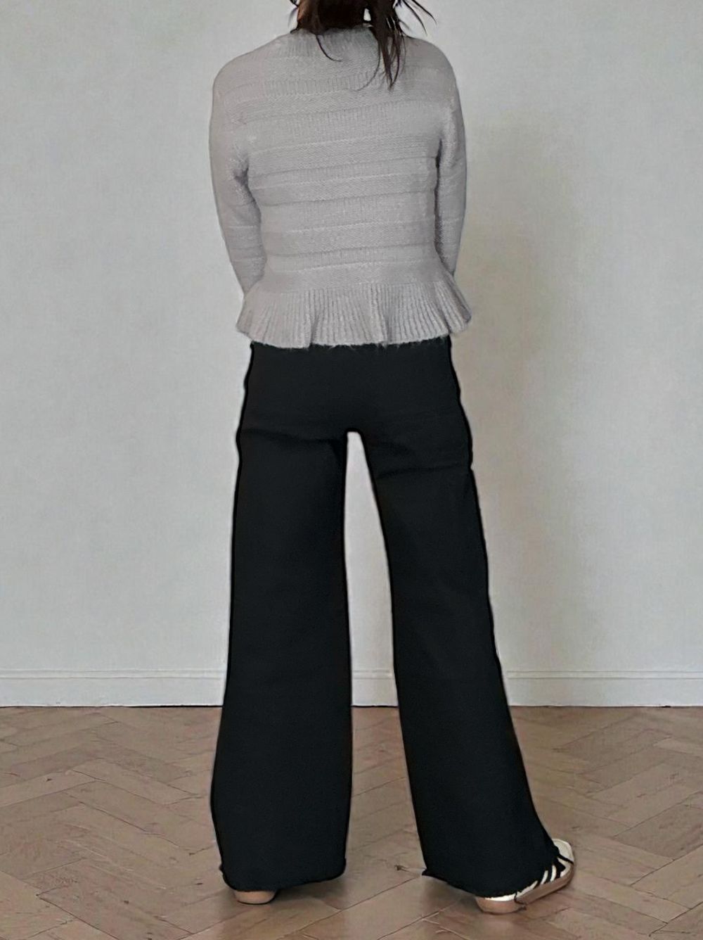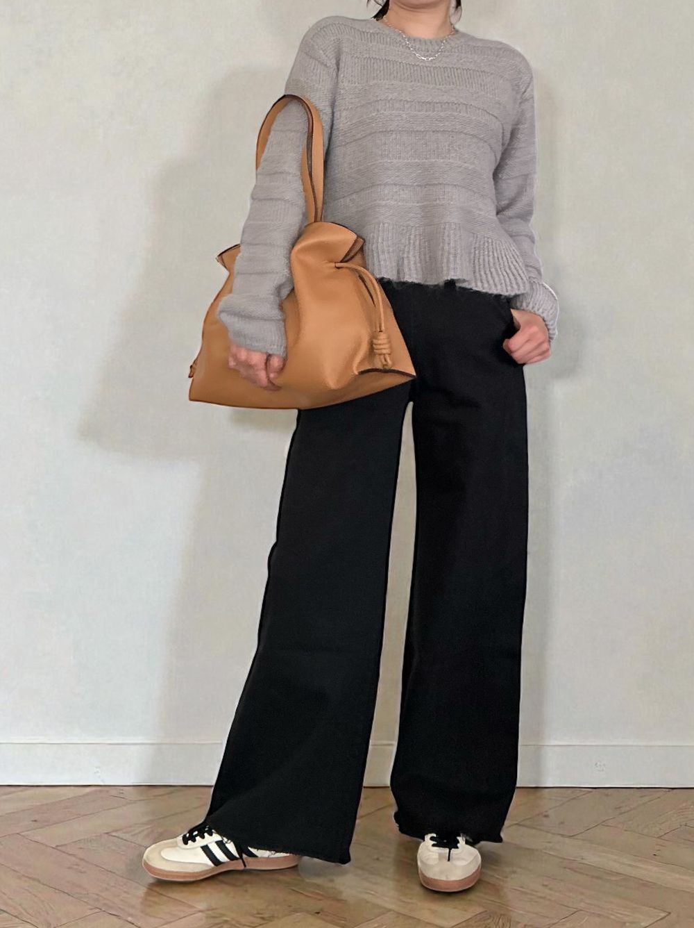 ふんわりとミドルゲージで編みこんだリブデザインに、甘くなり過ぎないゆるやかなペプラムが大人コーデを引き立てます。
