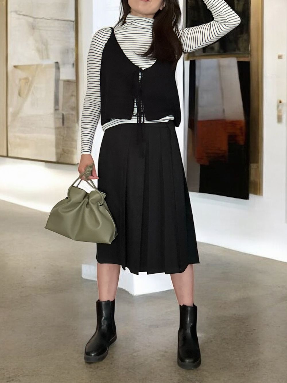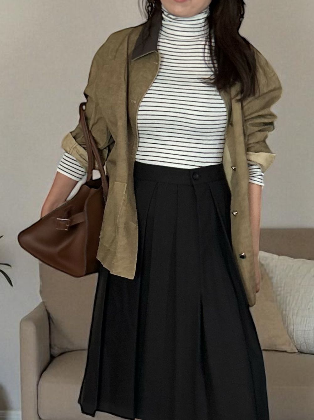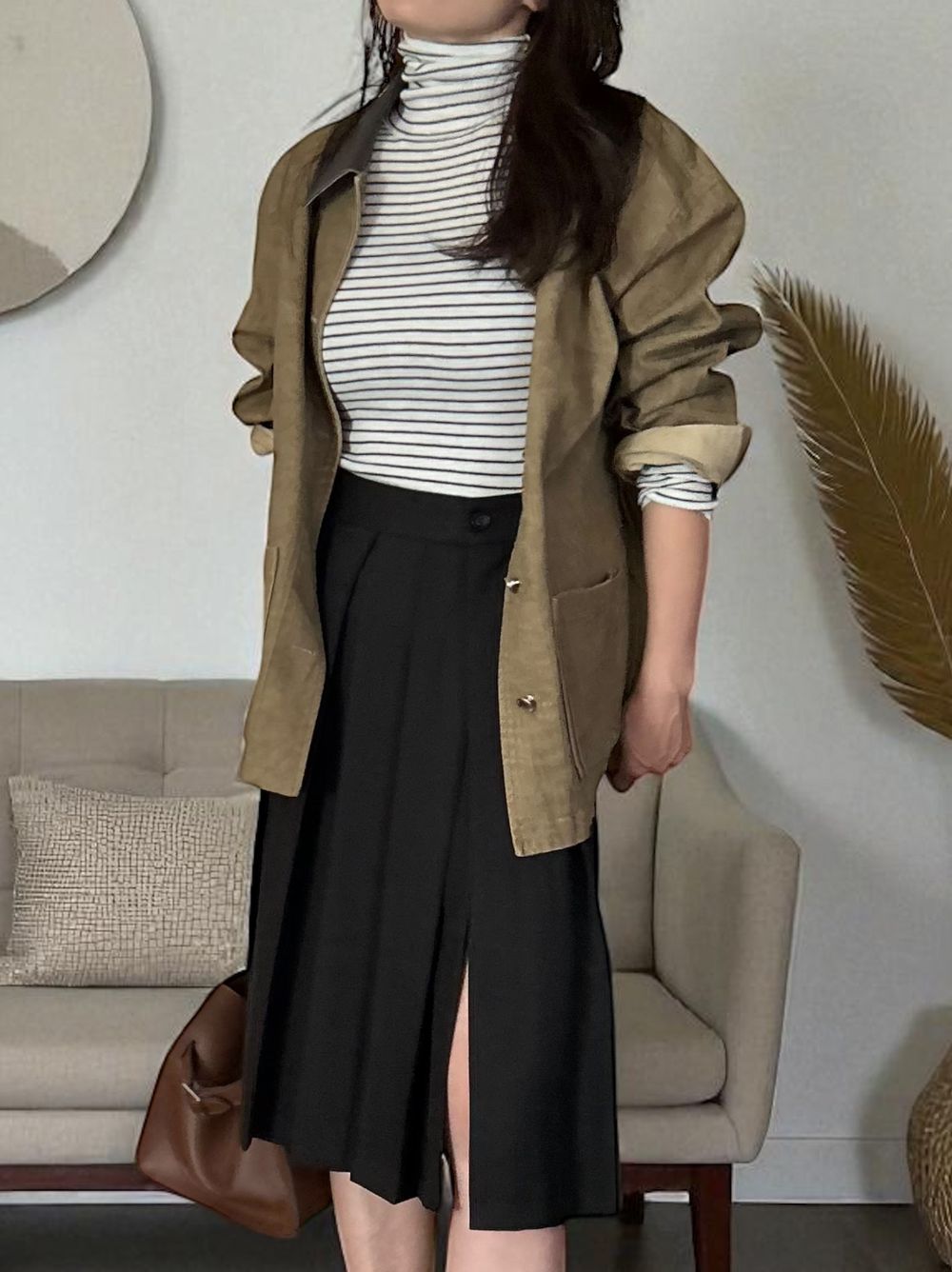 長めのタートル部分は折り返してスッキリとした印象に、またクシュっとさせて小顔効果を演出したりとアレンジできるのもポイント。