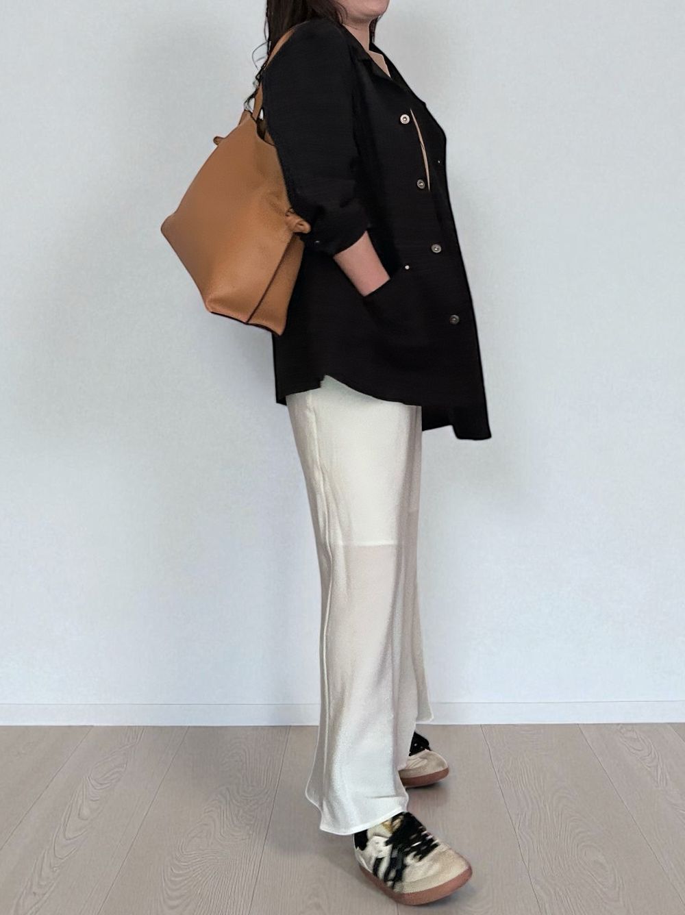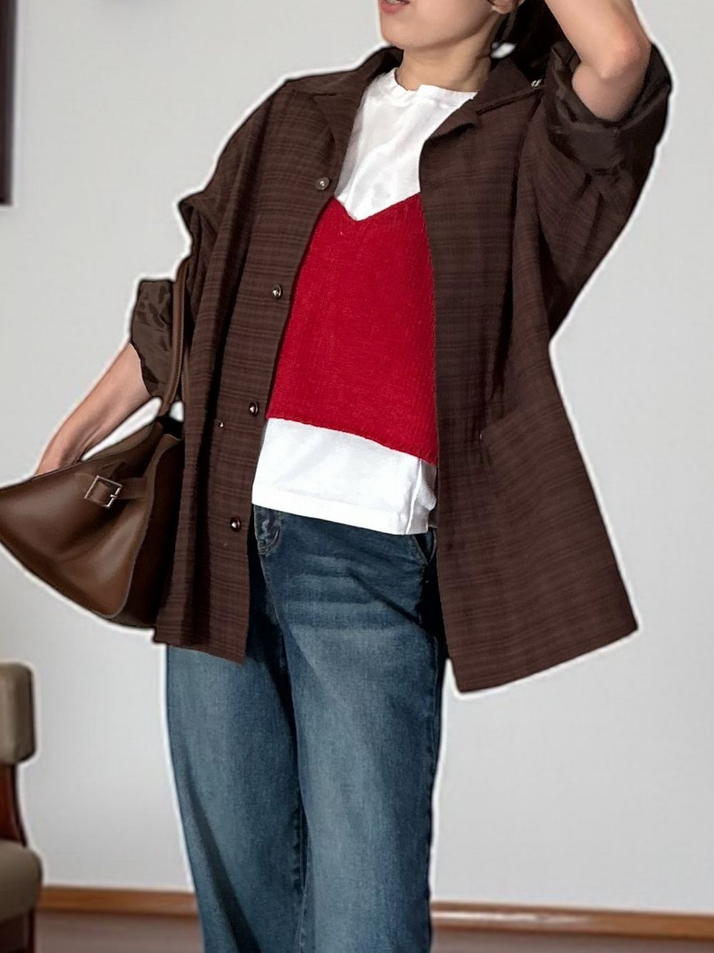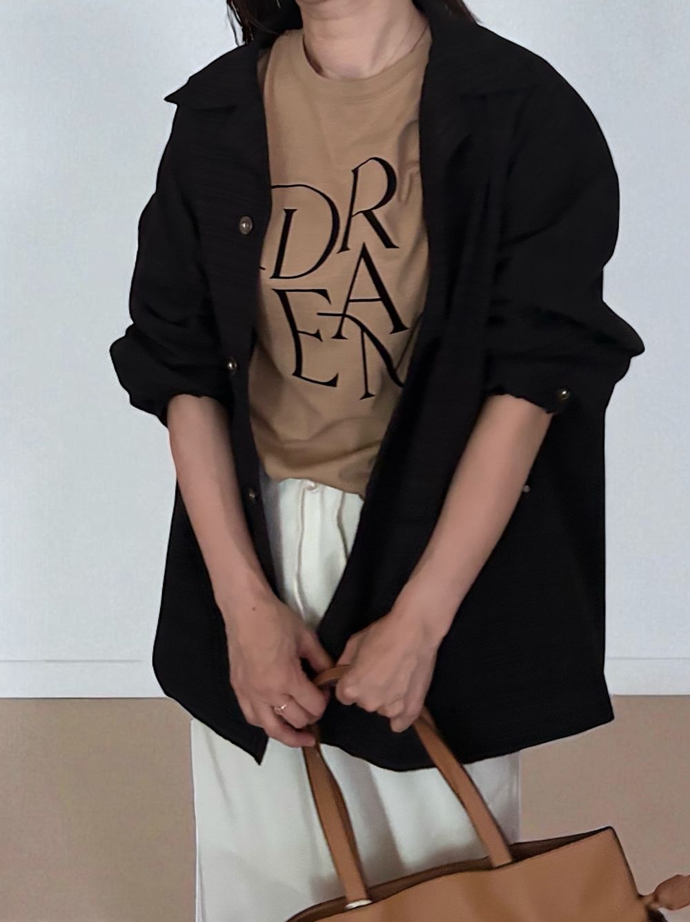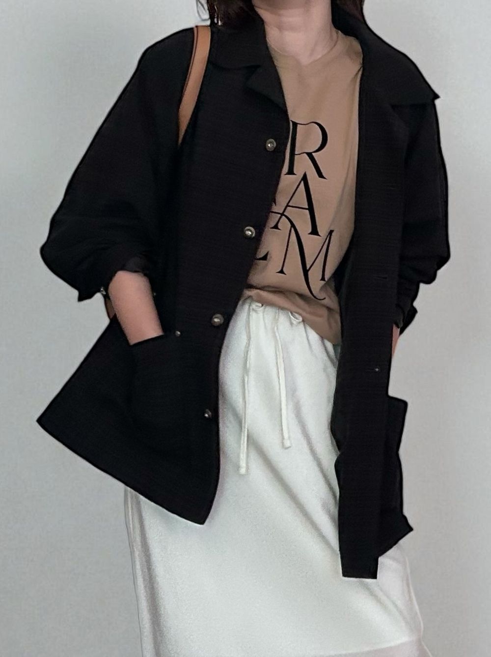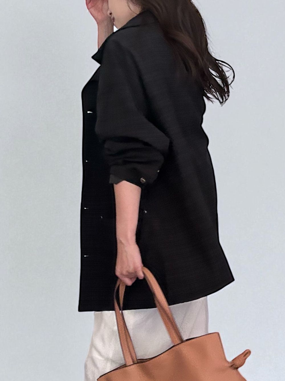カジュアルだけど高級感のあるシャツジャケットはデニムなどのパンツコーデはもちろん、スカートワンピースなども好相性です。