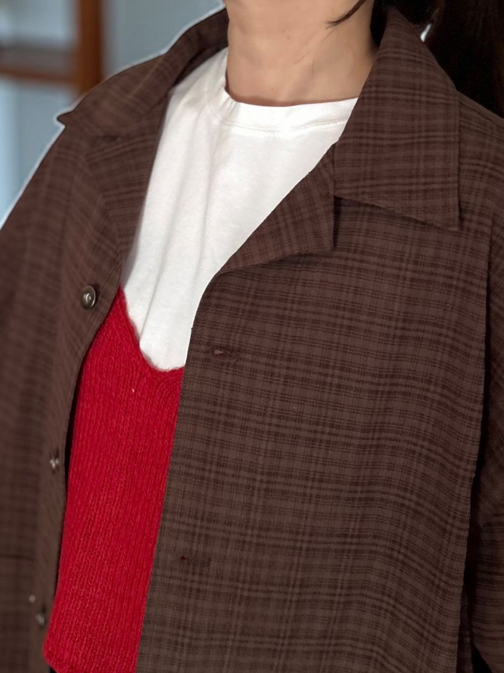 レーヨン混のコットンを使用したフランネルのようなソフトな生地感は、薄手のカットソーからニットまで様々なインナーを着用することを想定しごわつきのない仕上がりになっています。