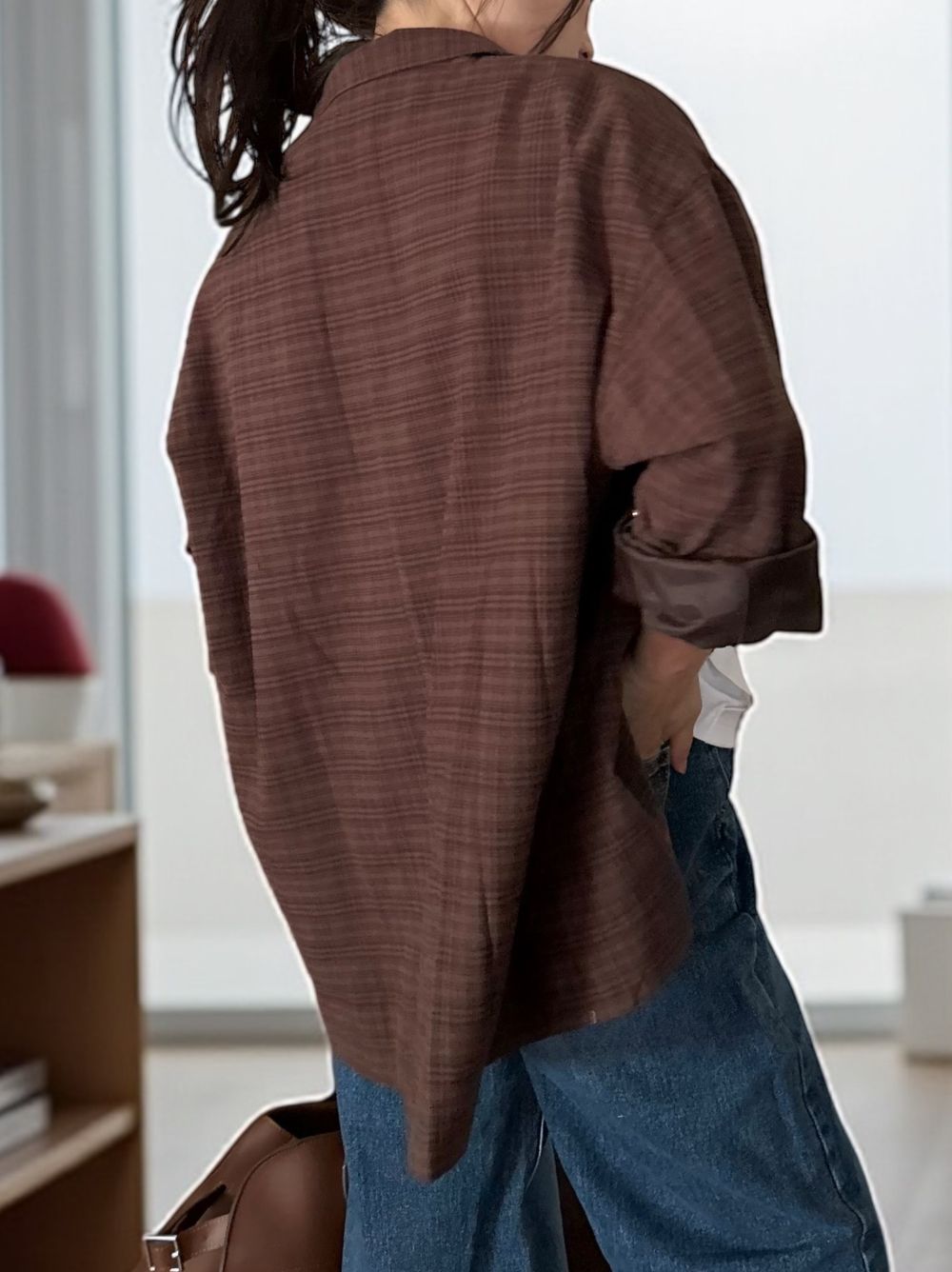 ヴィンテージな風合いを持ちながらオーバーサイズでトレンドを抑えたグレンチェック柄のジャケット。