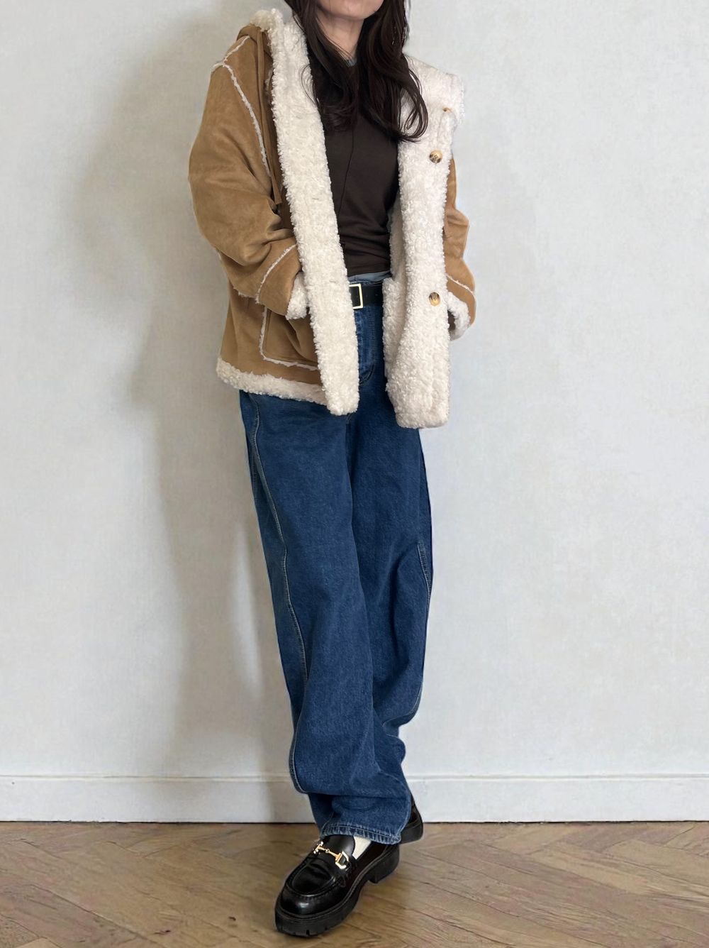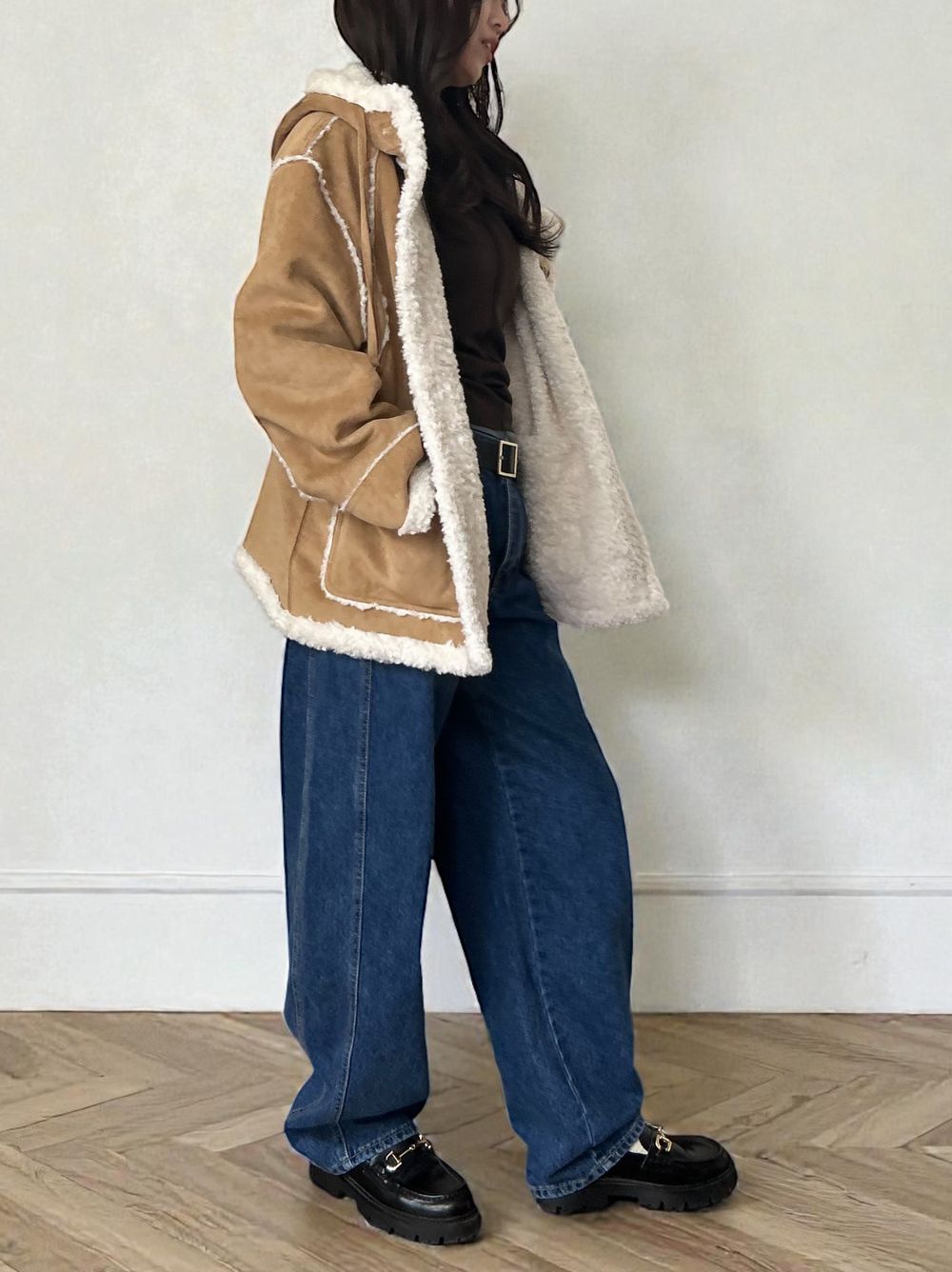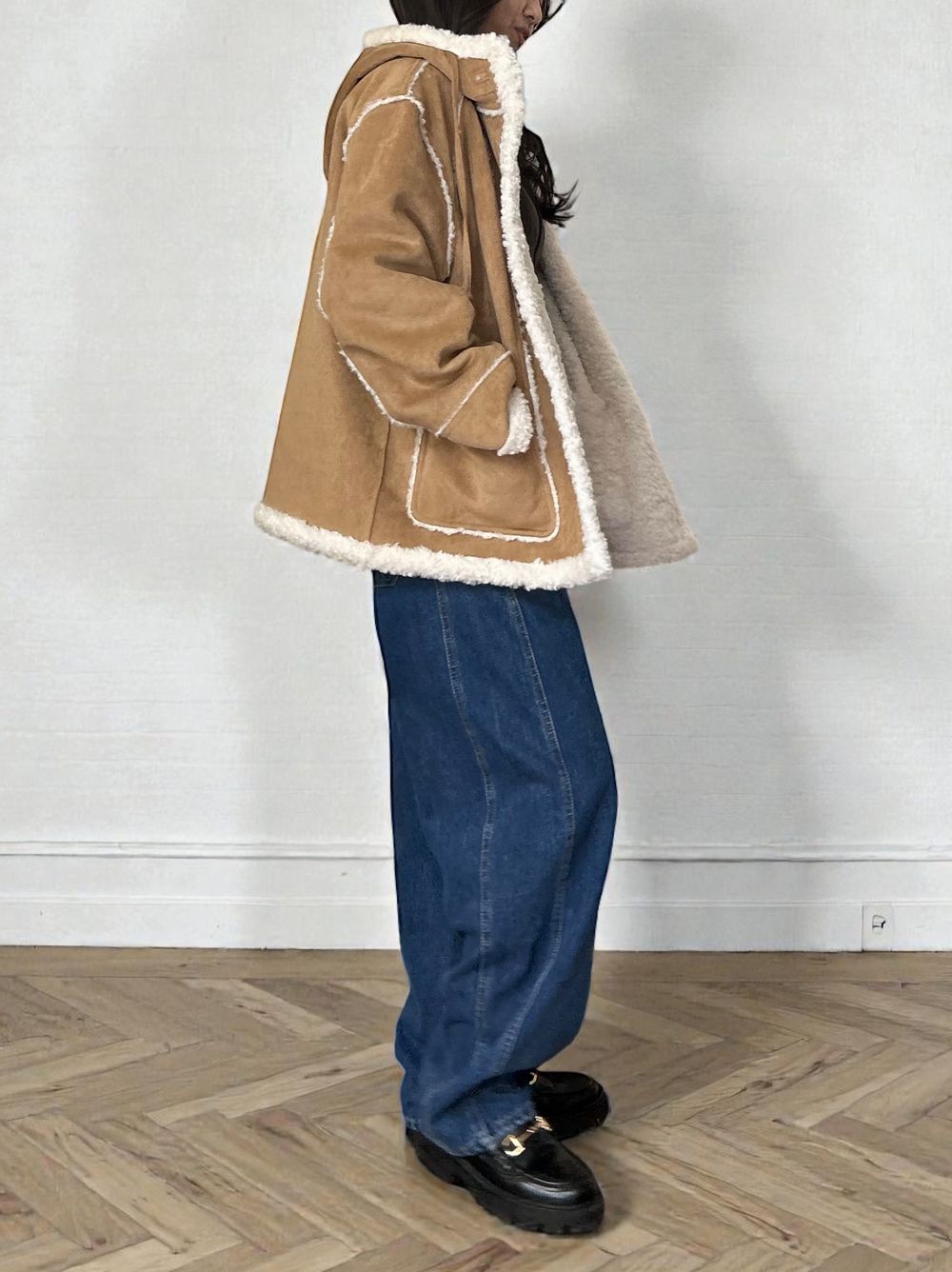 羽織った瞬間に伝わる上質感で大人の冬コーデにちょうどいい、フェイクムートンとボアのリバーシブル高見えコート。