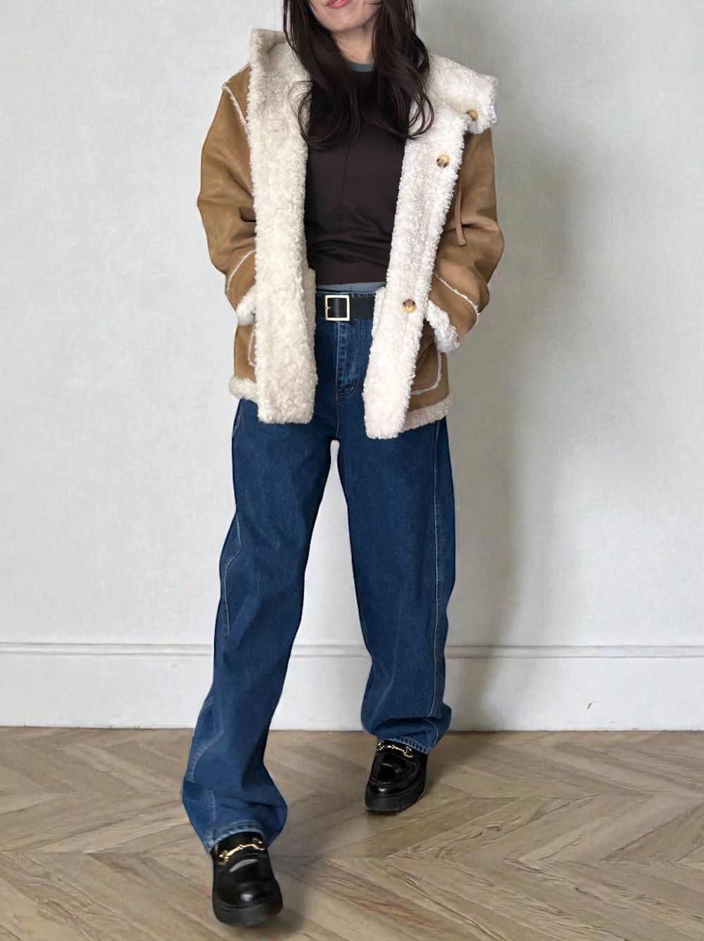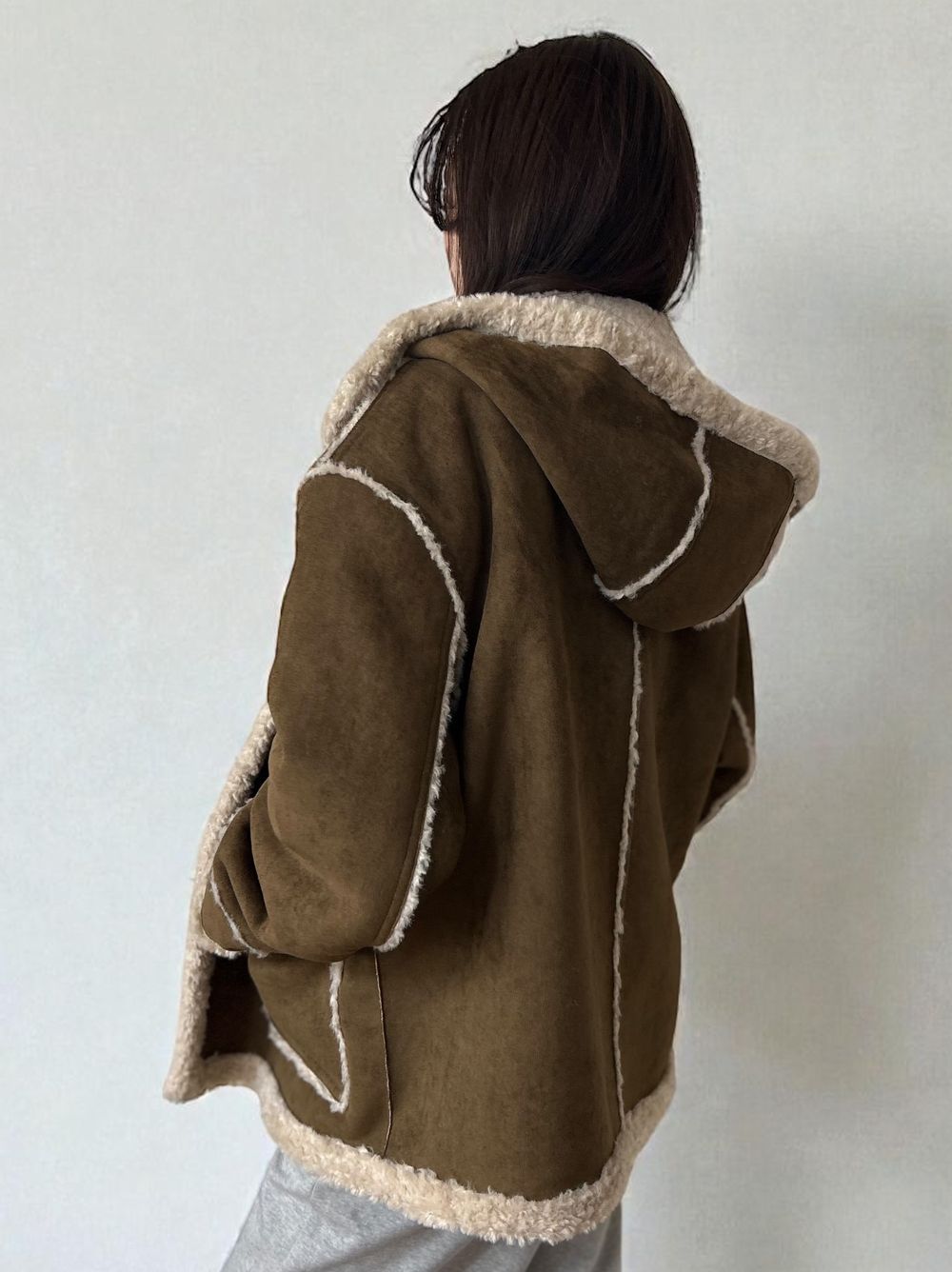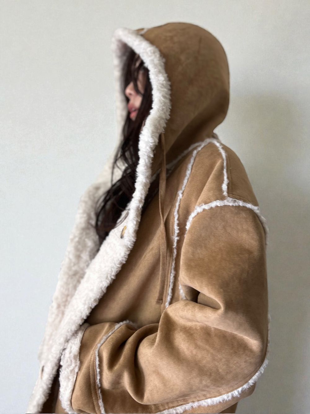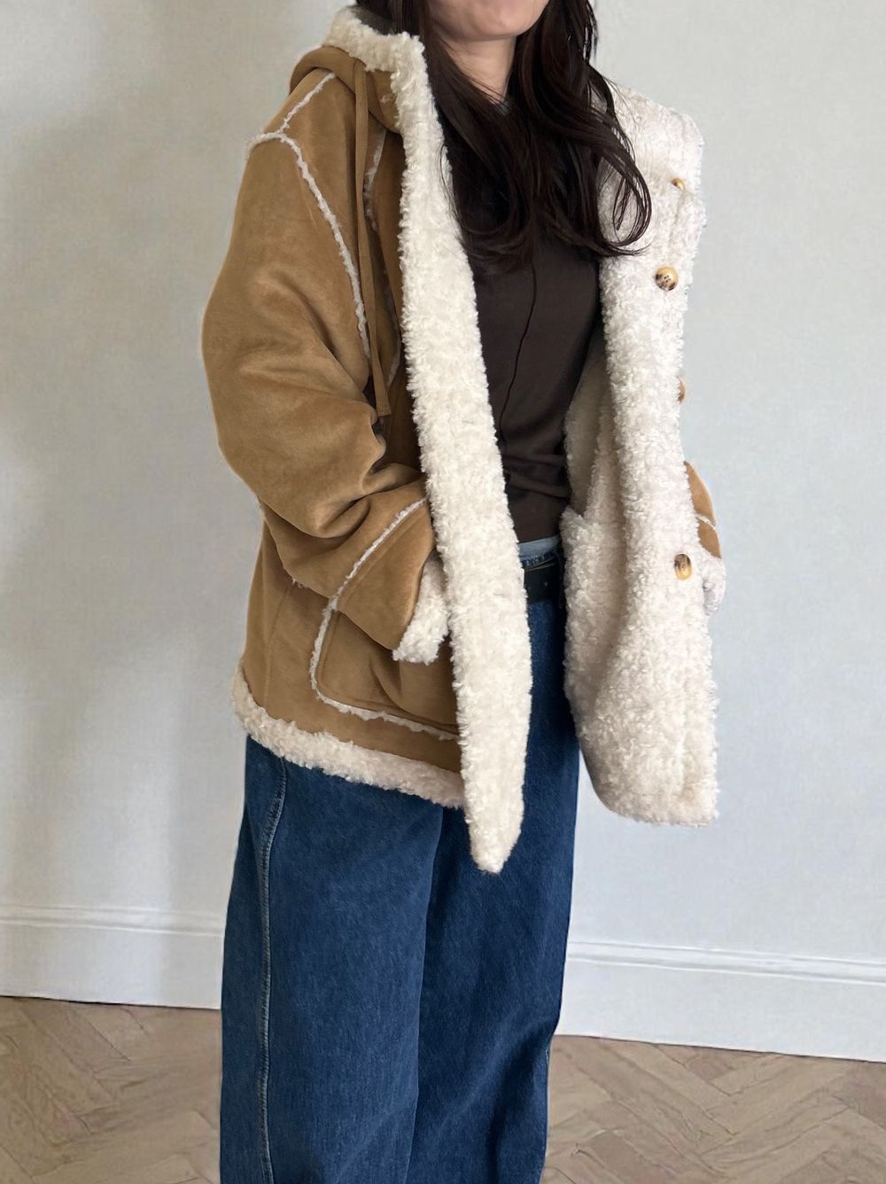 羽織った瞬間に伝わる上質感で大人の冬コーデにちょうどいい、フェイクムートンとボアのリバーシブル高見えコート。