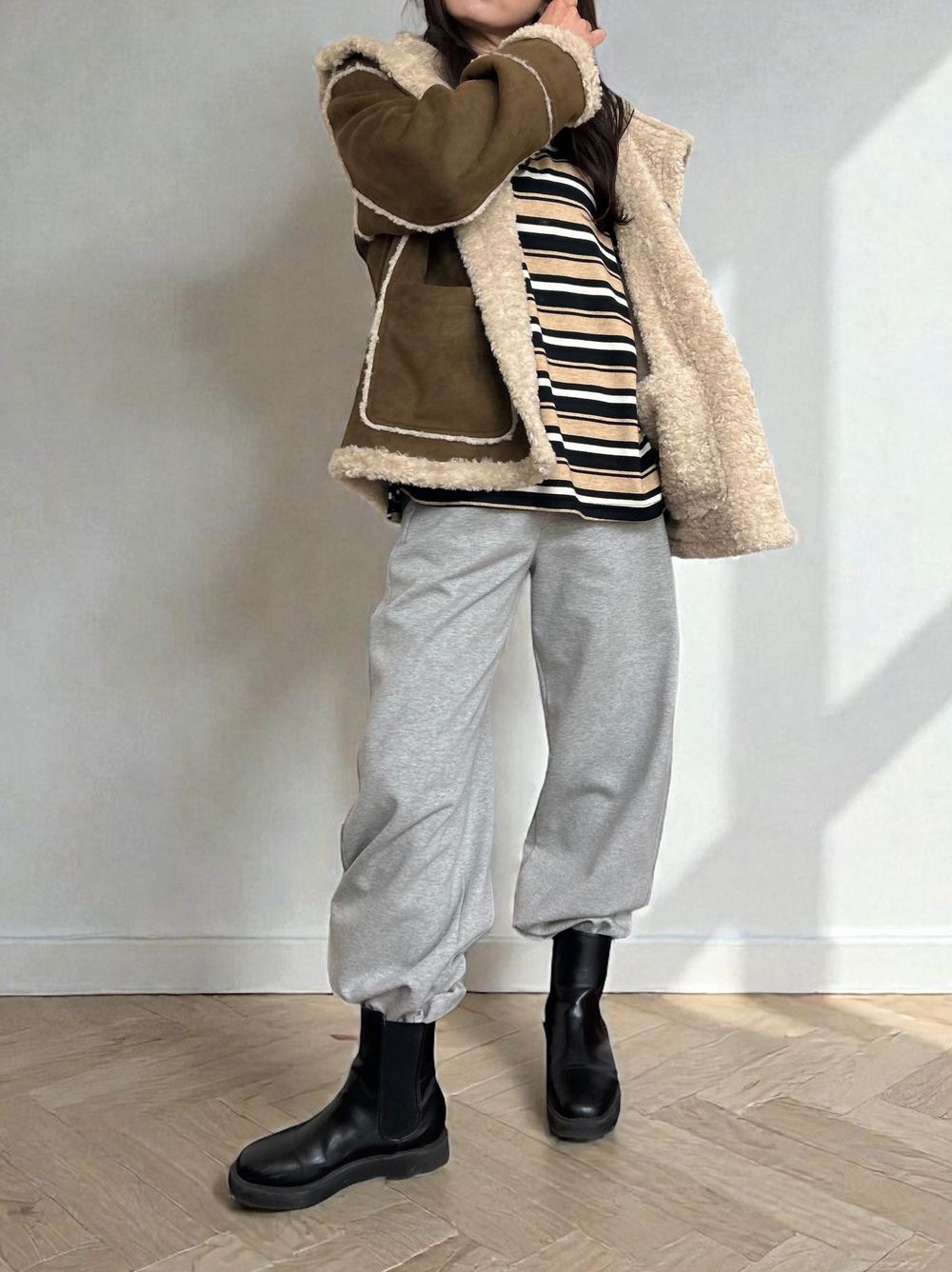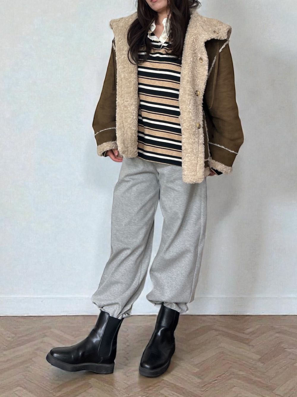表面はムートンライクなスエードで、落ち着きと品のある印象に。