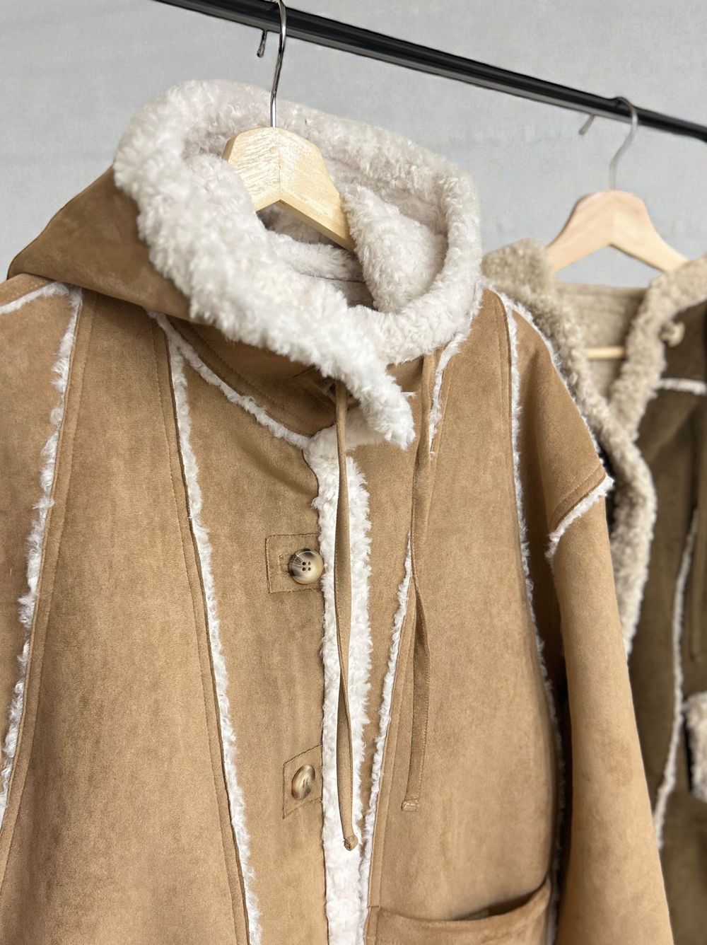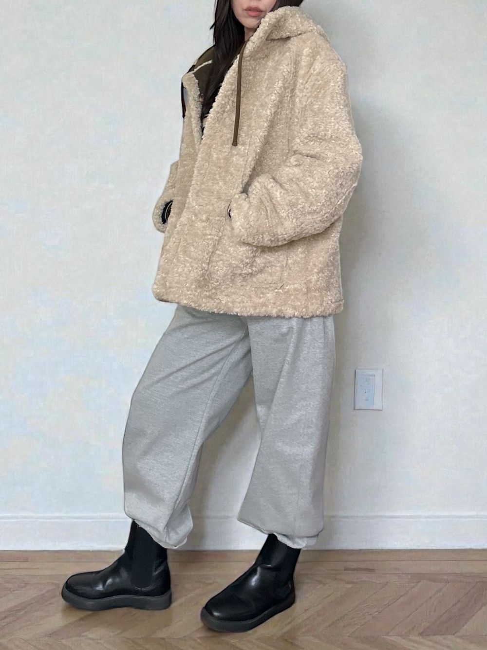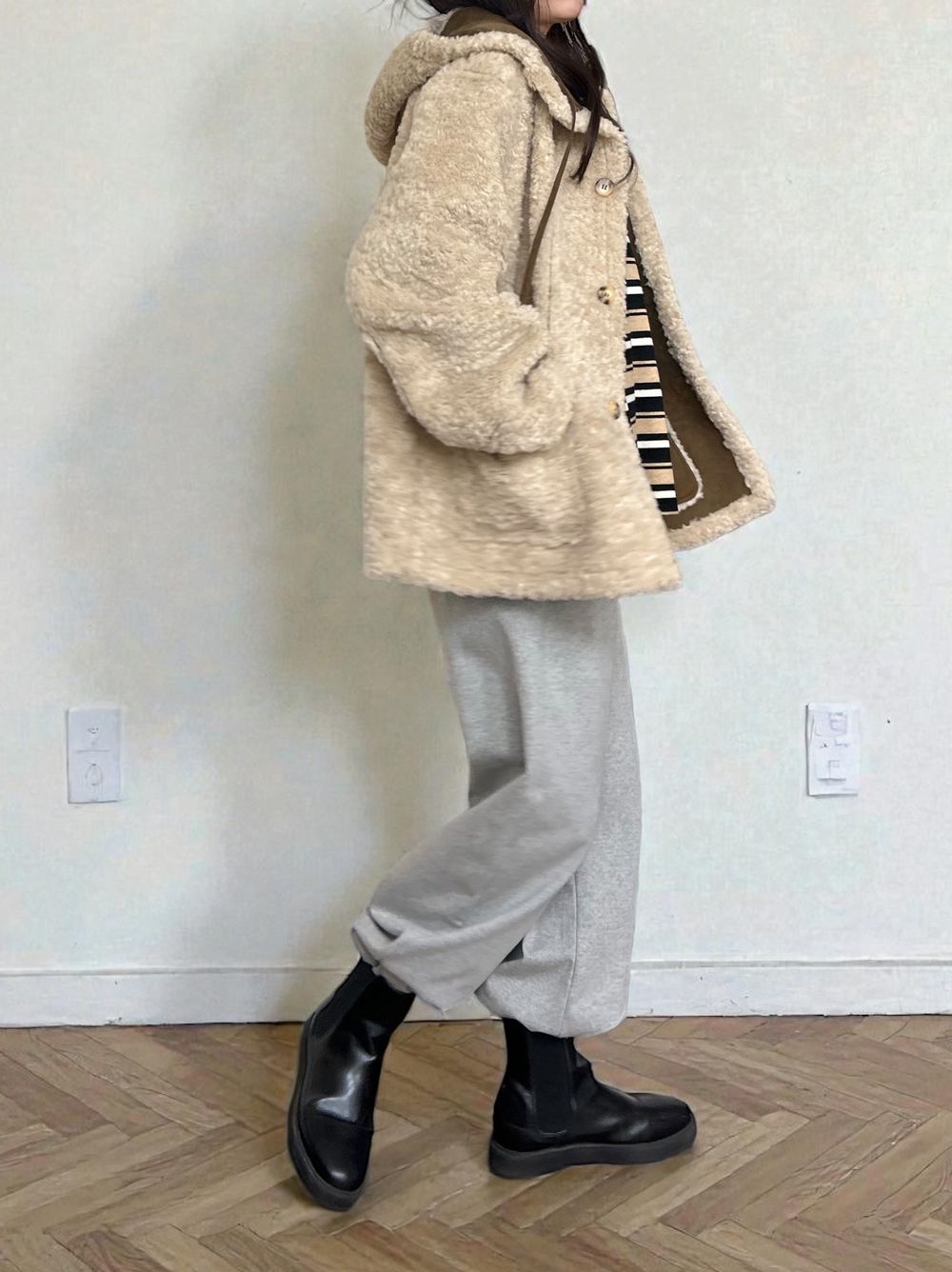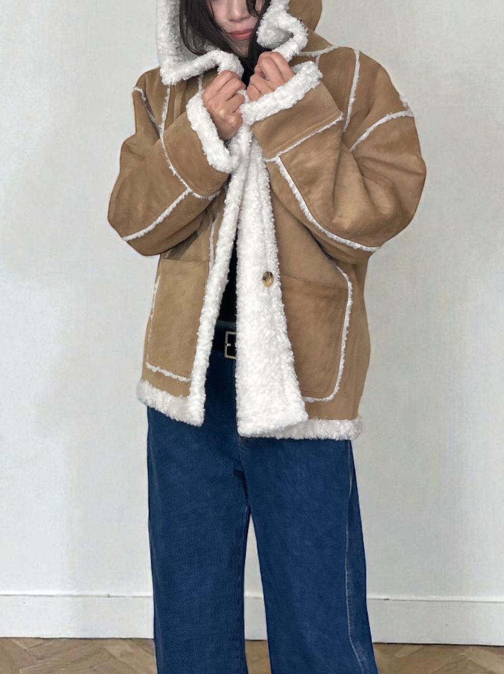 裏返せば、顔まわりまで暖かいボアが主役になり、柔らかく女性らしい雰囲気を演出します。