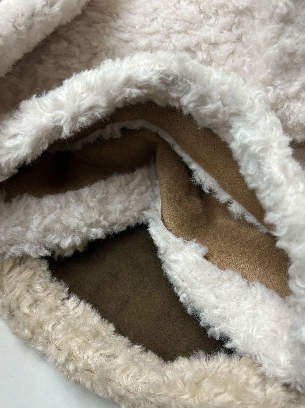 フェイクとは思えないほど滑らかなスエード調素材と、ふんわりとしたボアを贅沢に使用したダブルフェイス仕様。