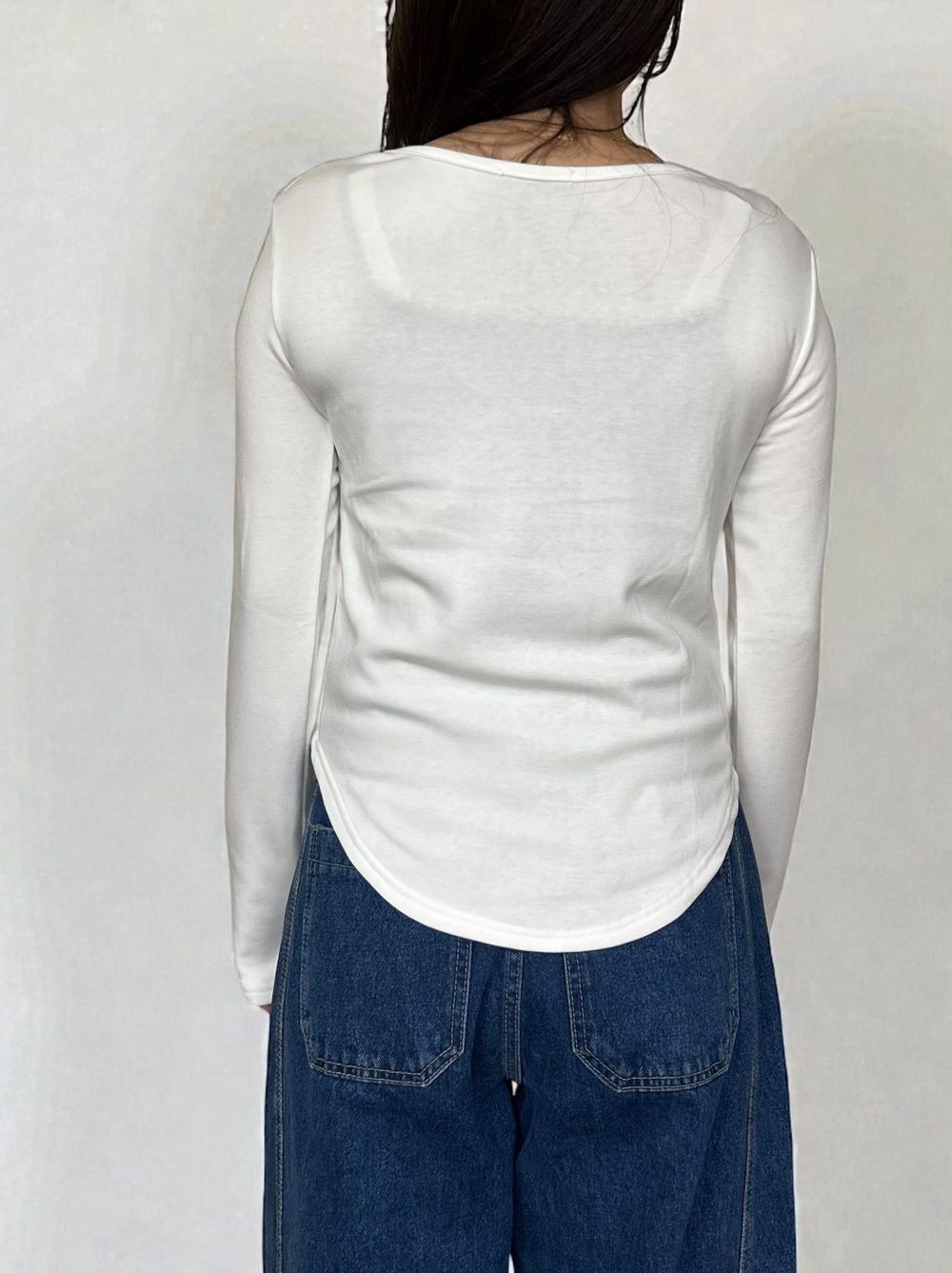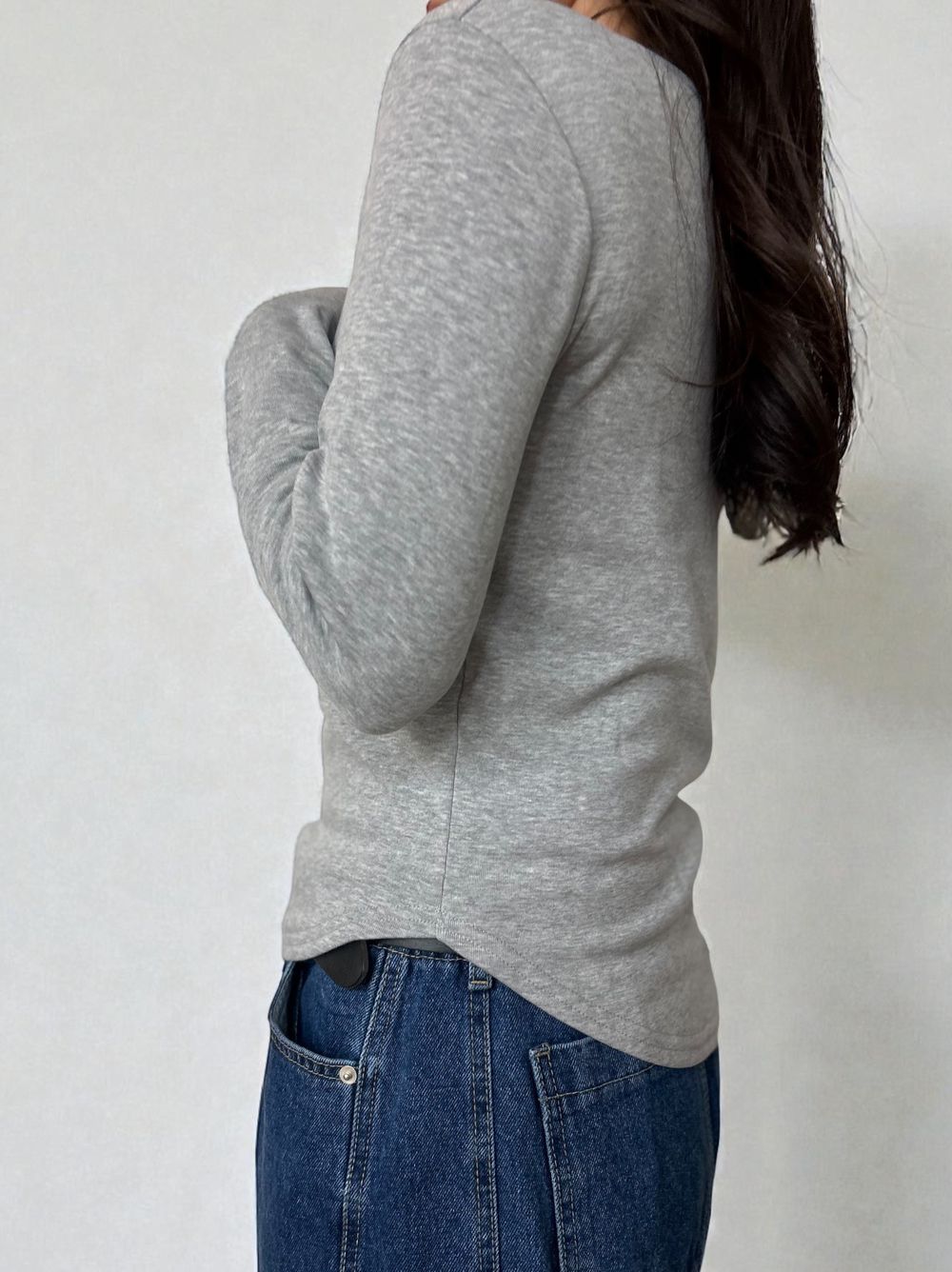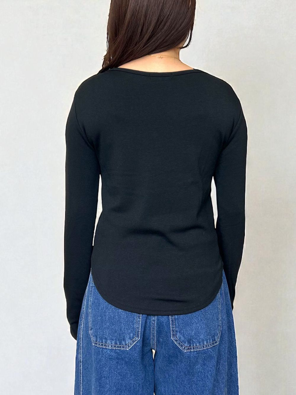 Curved hemlineフリースラウンドネックカットソー