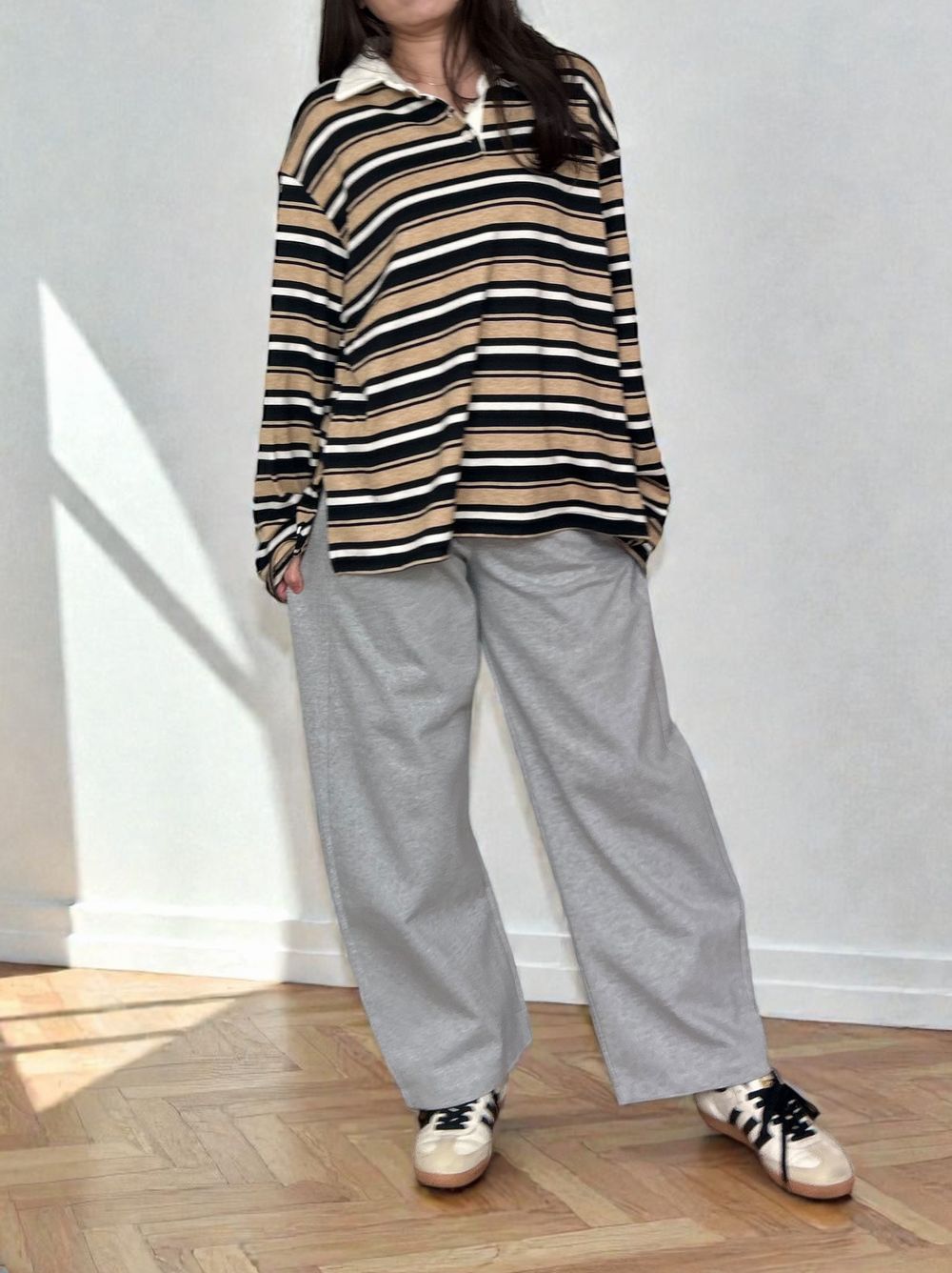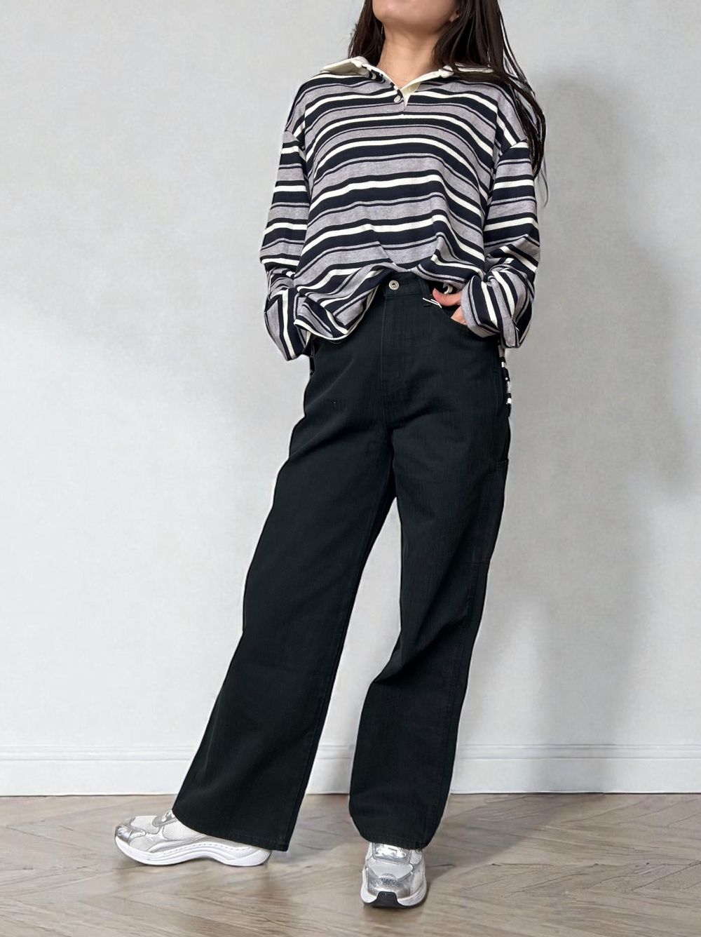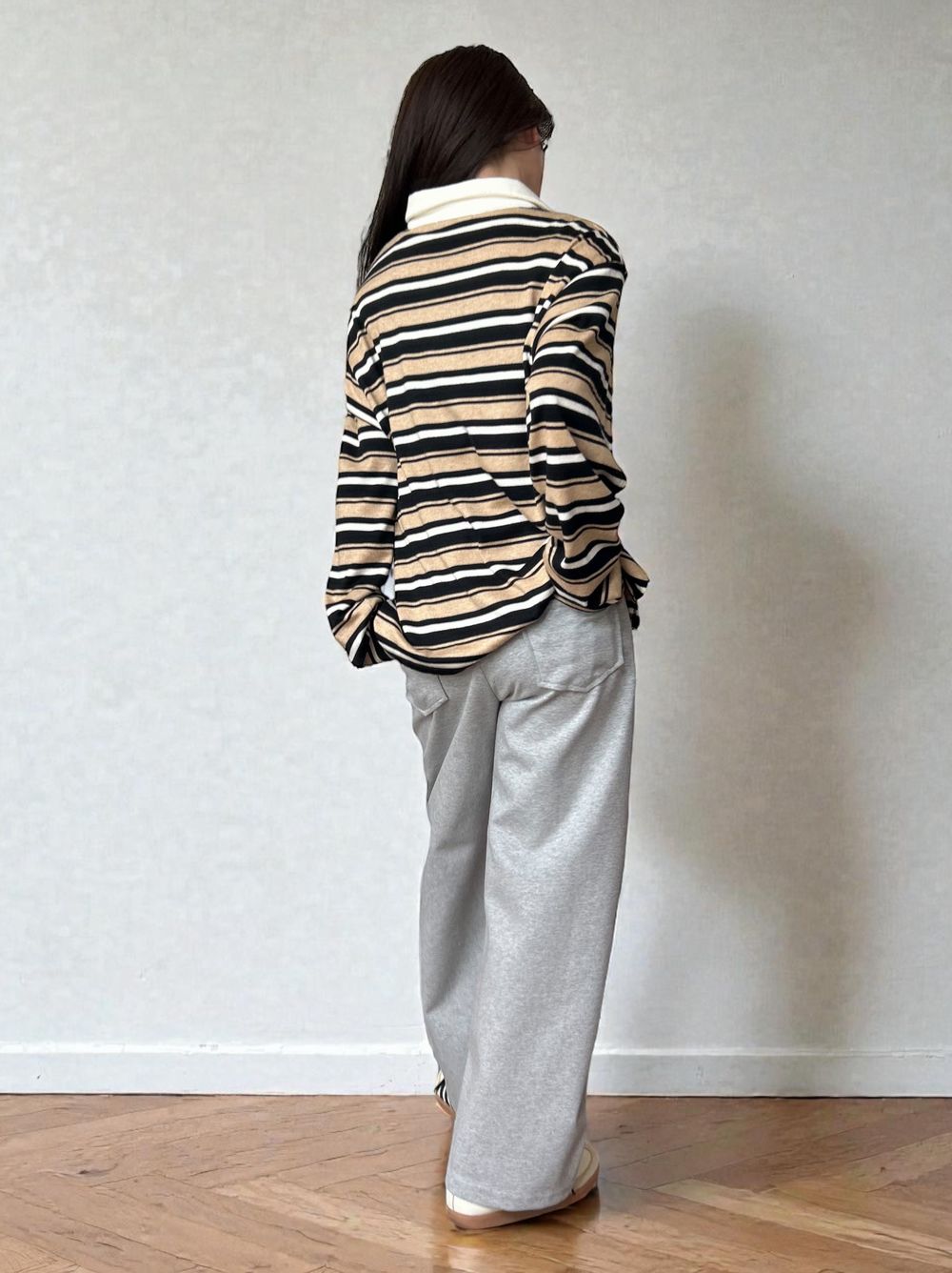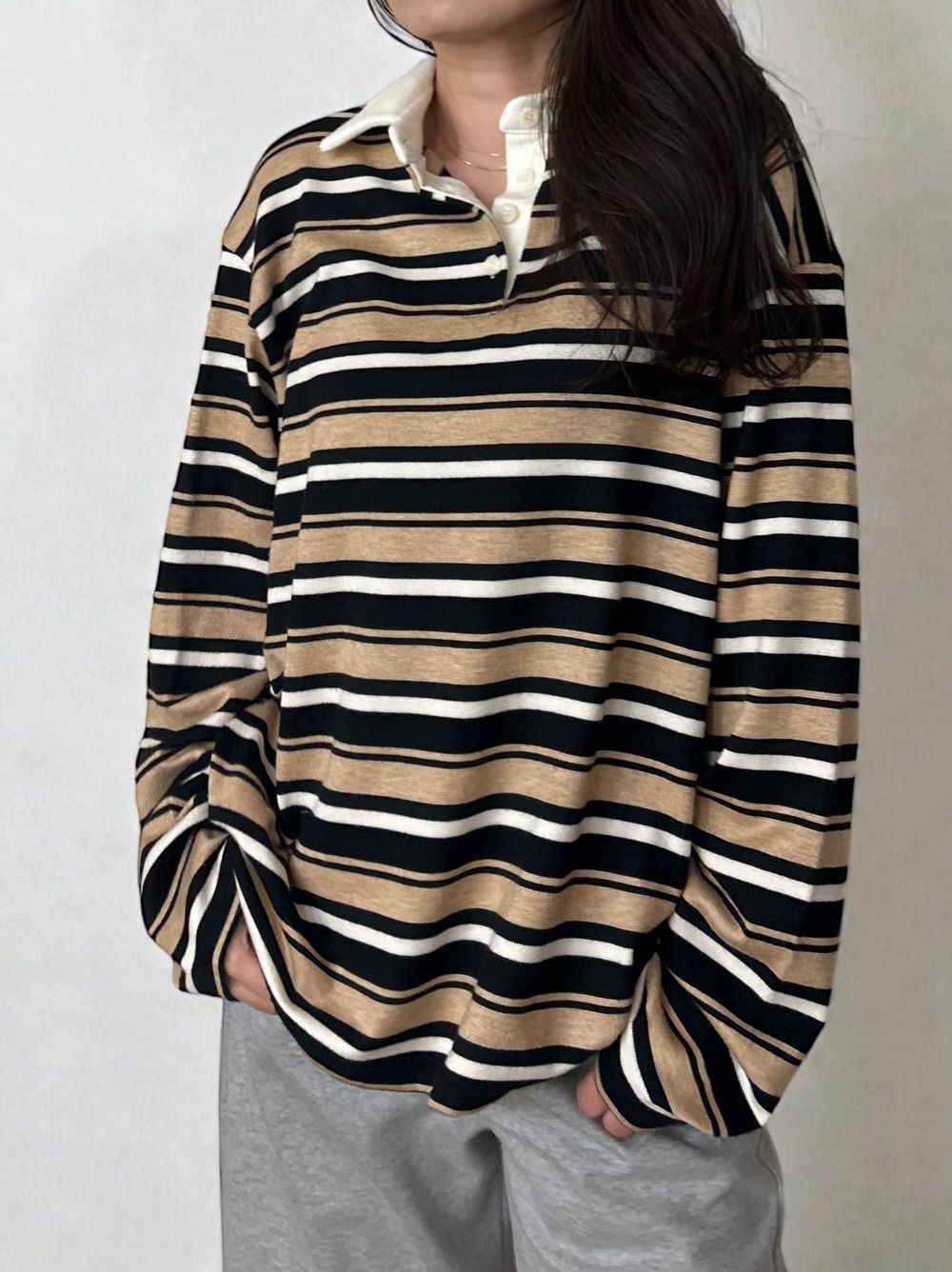 ゆったりとしたオーバーサイズながら、肩の落ち感やシルエットにこだわることで、骨格ストレートの方でもごつく見えず、すとんと自然に体に馴染むバランスに仕上げました。