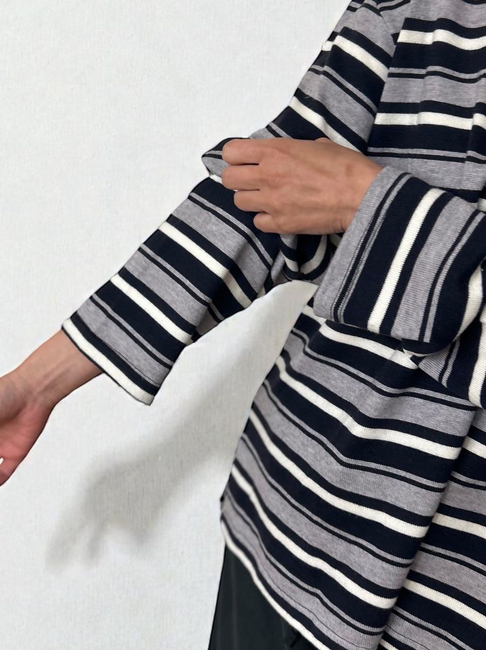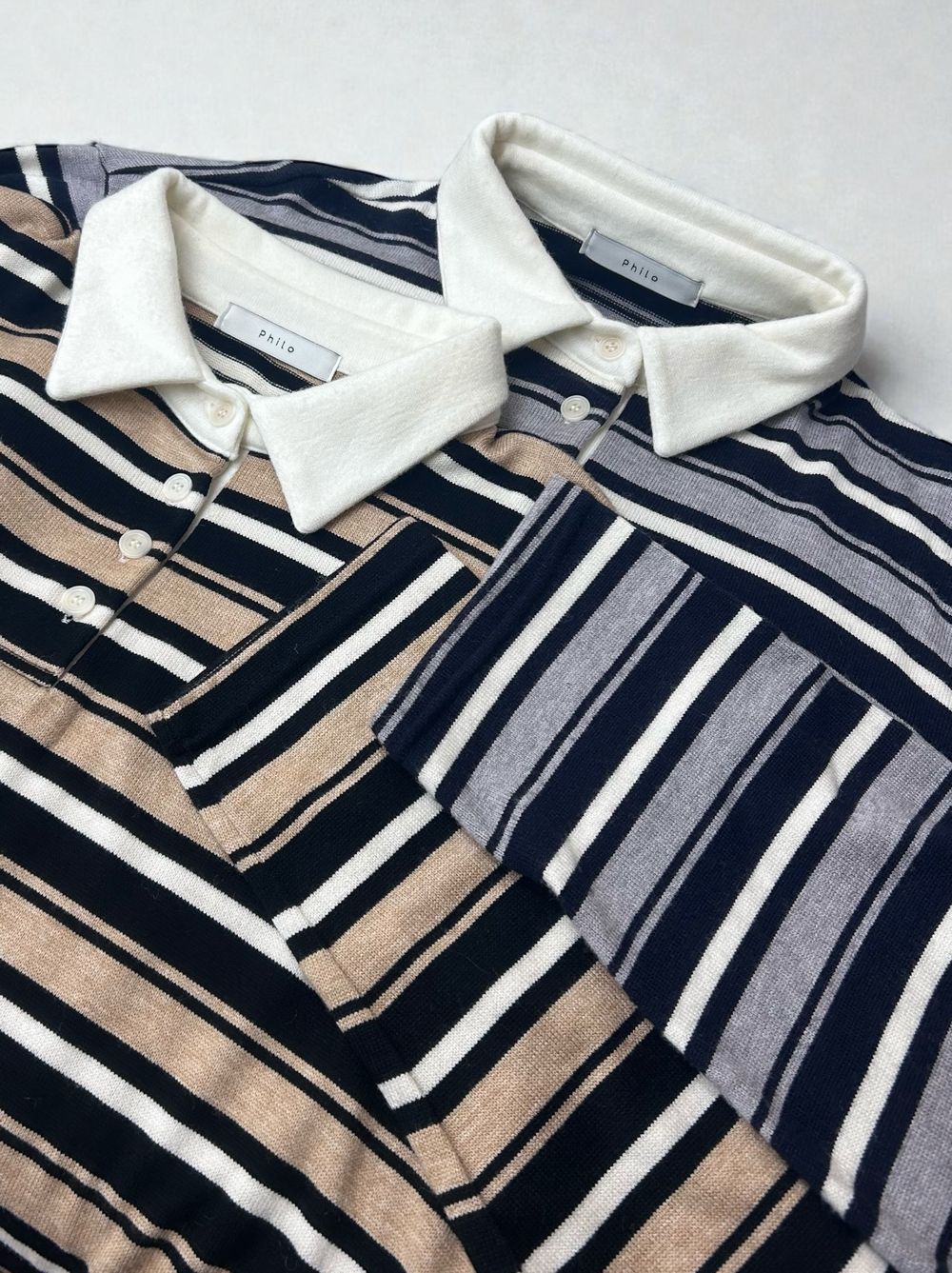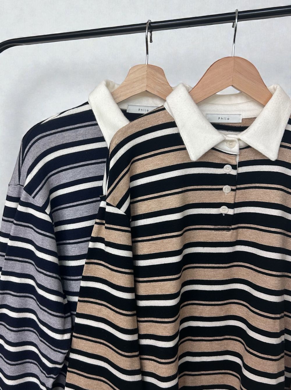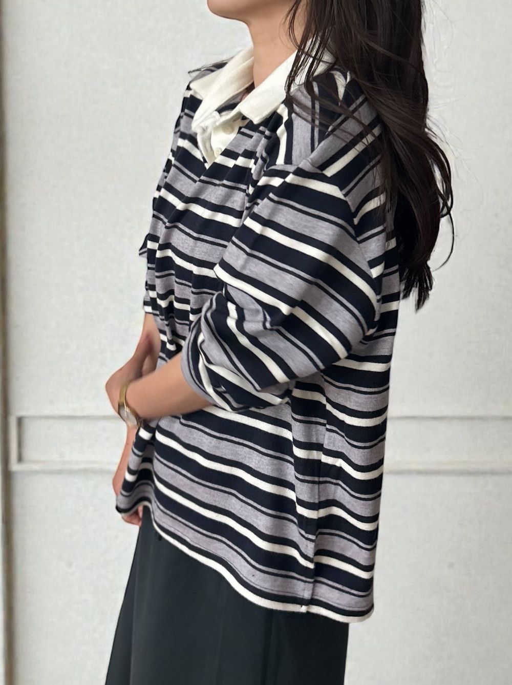どちらもコントラストを抑えた大人配色で、ボーダーでもカジュアルに寄りすぎず、スラックスやタイトスカートとも好相性。